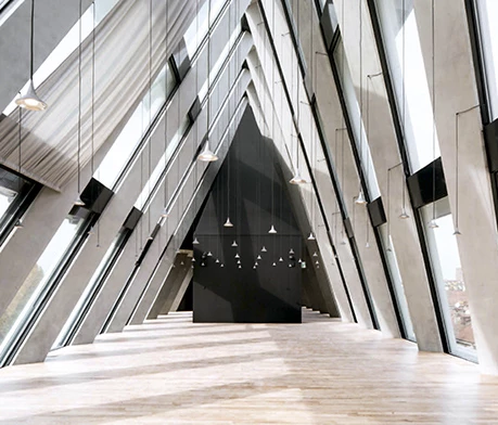 A narrow gap separates the Fondazione from the adjacent building, reflecting two autonomous constructions which are simultaneously part of an overall whole. The ground floor of the Fondazione accommodates the main entrance, cafeteria and book store, followed by the double height multi-functional space on the first floor, and an office area on both the third and fourth floors. The reading room on top of the Fondazione offers researchers and interested public the opportunity to study documents from the historical collection stored in the secure underground archive.