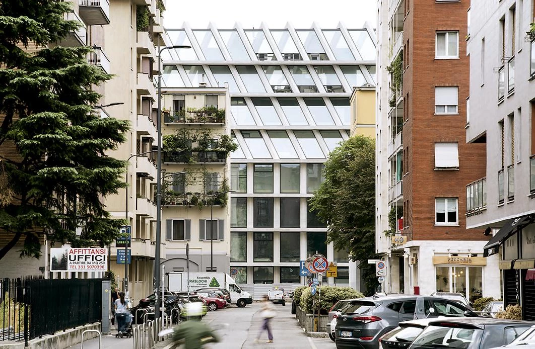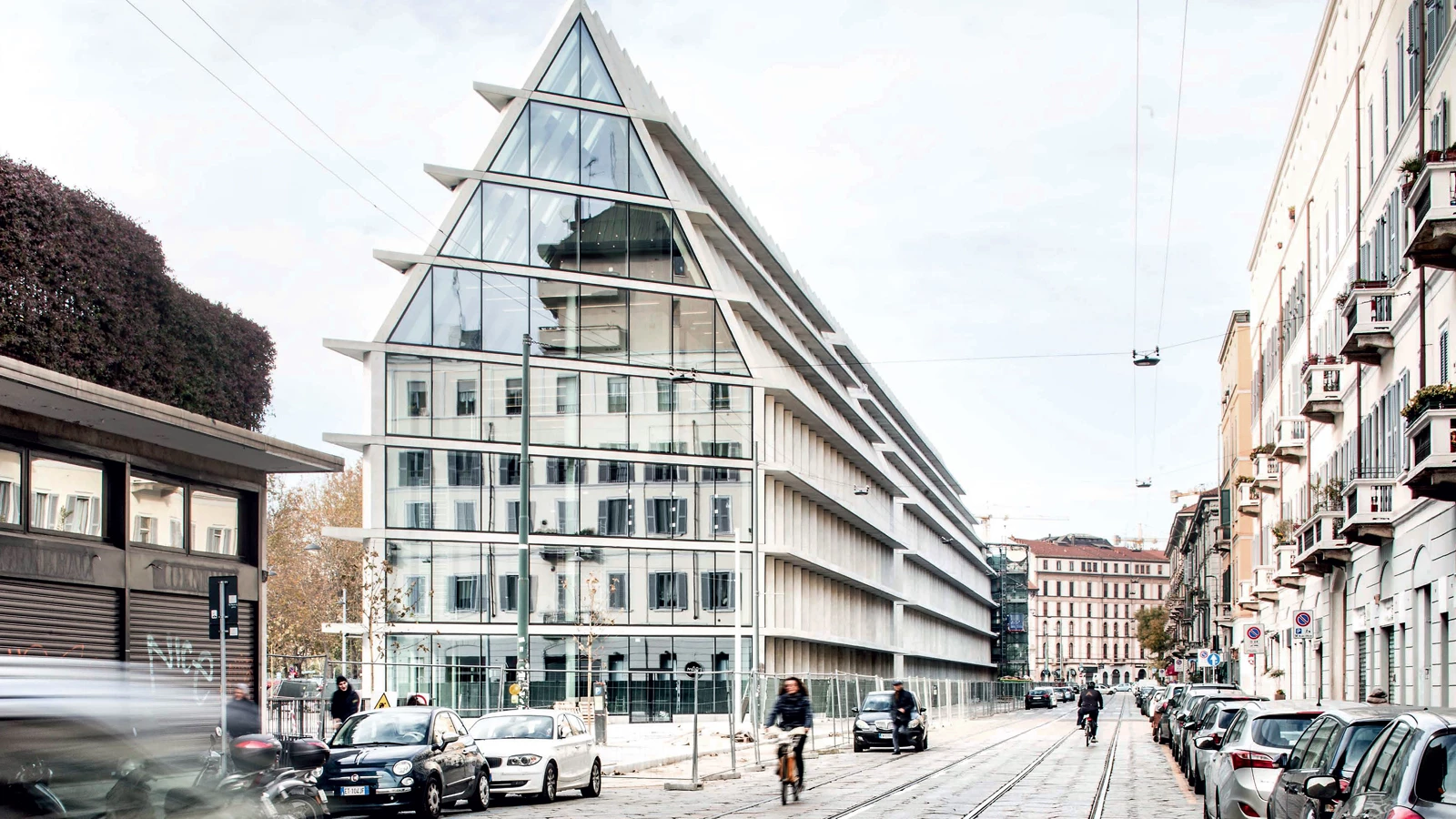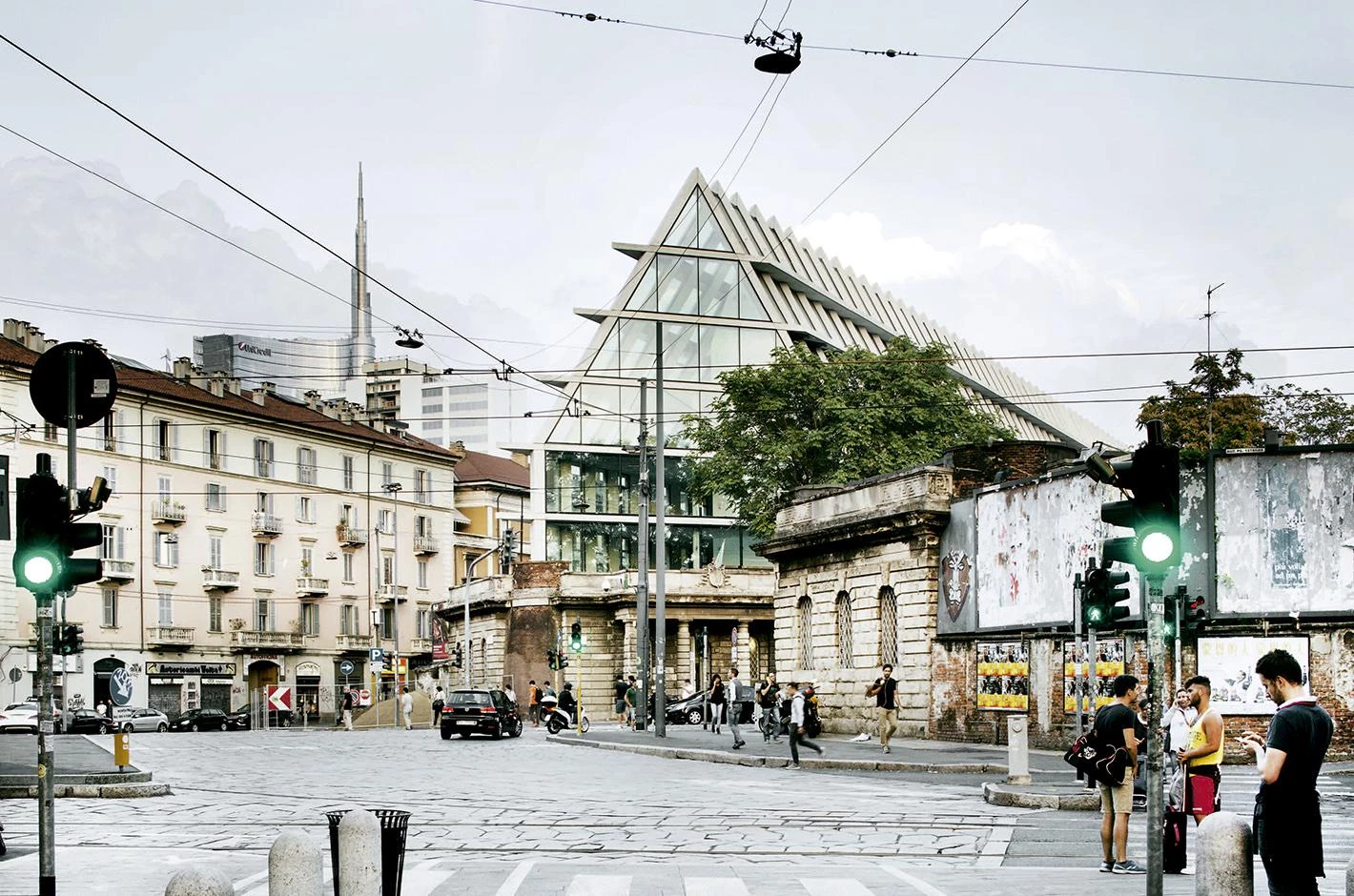 The new buildings are inspired by the simplicity and generous scale of historic Milanese architecture as Ospedale Maggiore, Rotonda della Besana, Lazaretto and Castello Sforzesco, and also by the long, linear Cascina buildings of the rural architecture in Lombardy. Similarly, the project proposes an elongated and narrow architecture where the roof melts into the facades. The structure is rotated, expressing the geometrical conditions of the site, and balances between transparency and spatial definition. Facade, structure and space form an integrated whole.