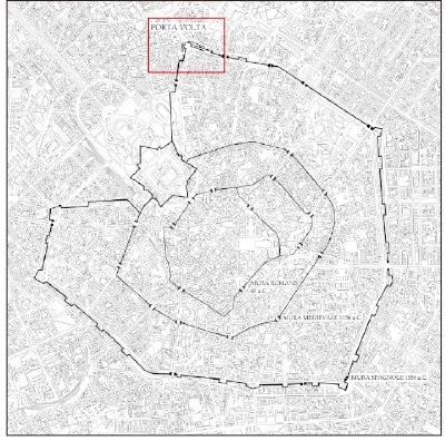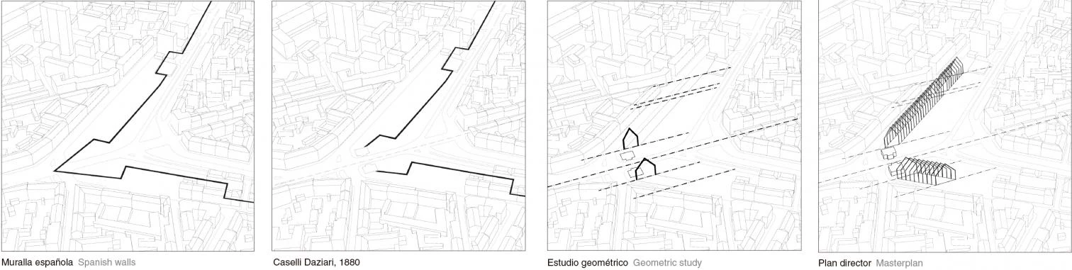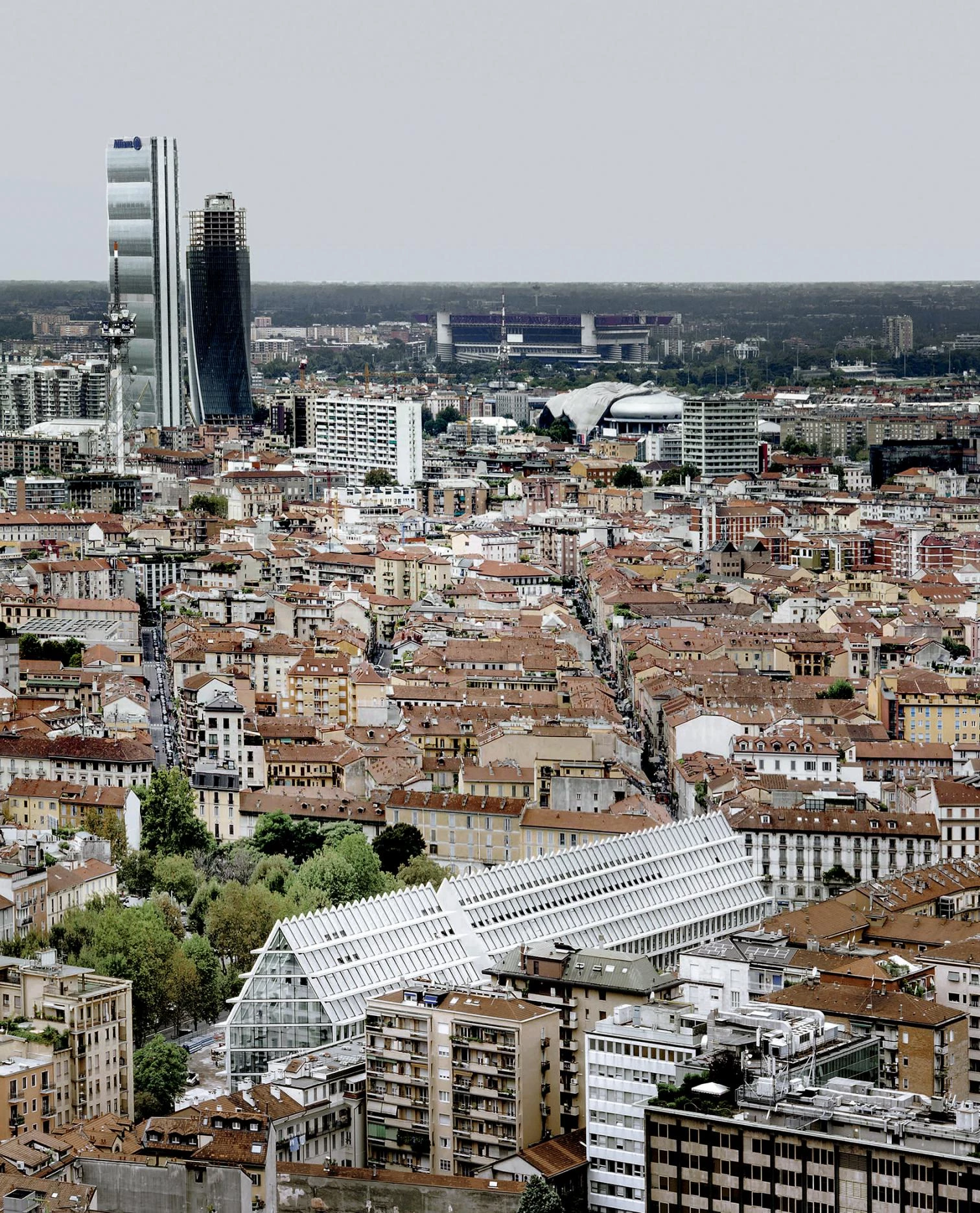 As part of the redefinition of the area Porta Volta, Fondazione Giangiacomo Feltrinelli is relocating its seat to the northern center of Milan. Together with the building of Fondazione, the project includes the development of two further buildings, mainly dedicated to offices, and a generous green area as extensions of the existing boulevards. The urban organization of Porta Volta traces back to the course of the Mura Spagnole, the ancient 16th century city walls which were the last of a series of fortifications which have defined the city’s growing boundaries since Roman times. After the opening of the bastion in the late 19th century, Via Alessandro Volta acted as the new prominent axis which laid the basis for the city’s extension, growing from the two old Caselli Daziari di Porta that marked the former entrance to the city. To the sides of these buildings, the Edificio Feltrinelli and the Fondazione are placed along Viale Pasubio, and the Edificio Comune along Viale Montello – opposite to the axis of Via Alessandro Volta –, taking up the Milanese tradition of twin buildings and underlining the presence of the historical gate.