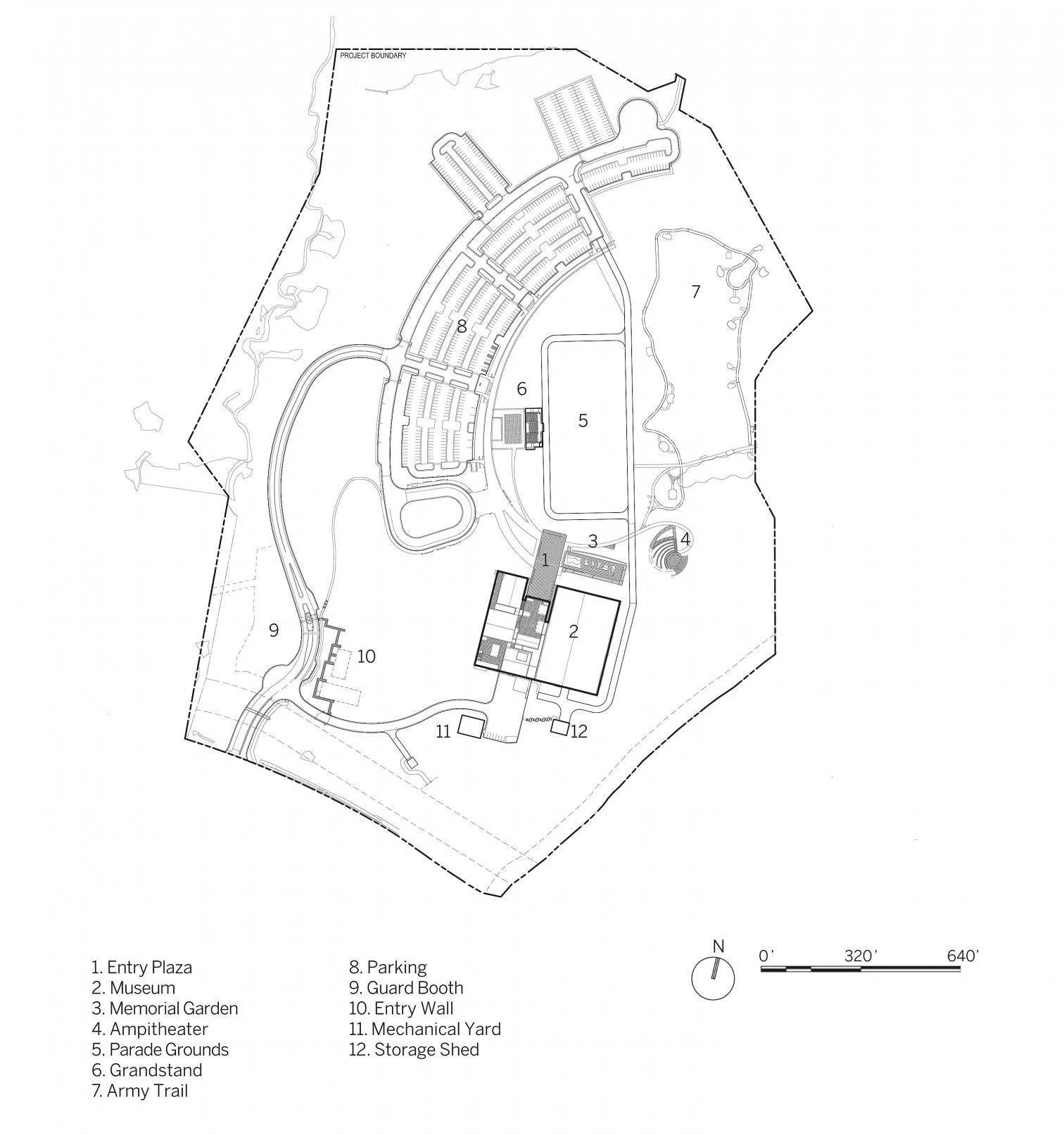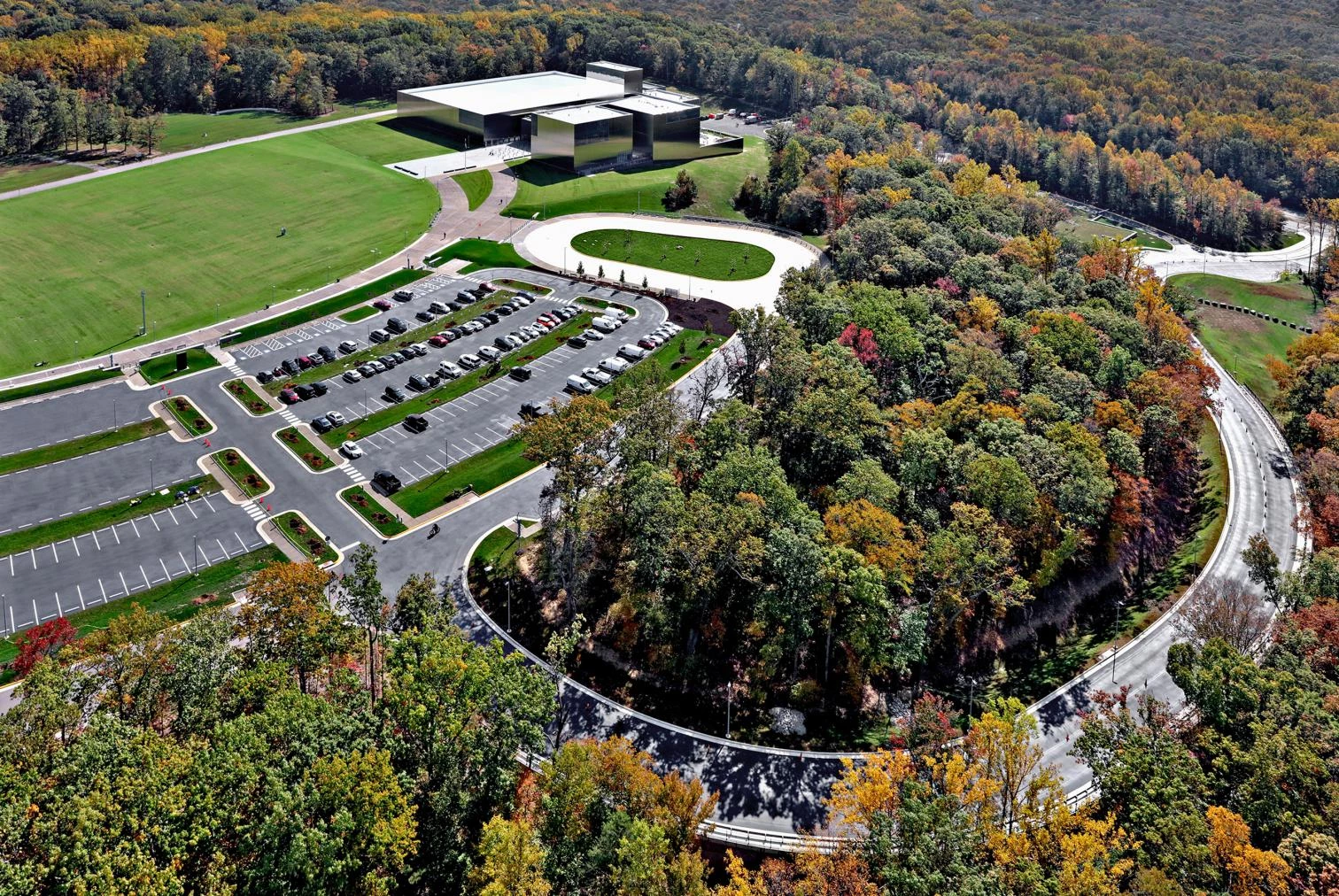 Located at Fort Belvoir (Virginia), 30 kilometers from Washington, DC, this 17,187-square-meter museum, a work of the firm Skidmore, Owings & Merrill (SOM), is fragmented into five monolithic pavilions differing in size – the tallest one standing 30 meters – and connected by glazed walkways. Making the most of the natural topography, the building rises on a plateau, which has a monumental effect. The monoliths are clad in stainless steel panels, laser-cut to fit the grid for precision. To achieve a dynamic exterior, the corners present an alternation of glass sections and aluminum fins.