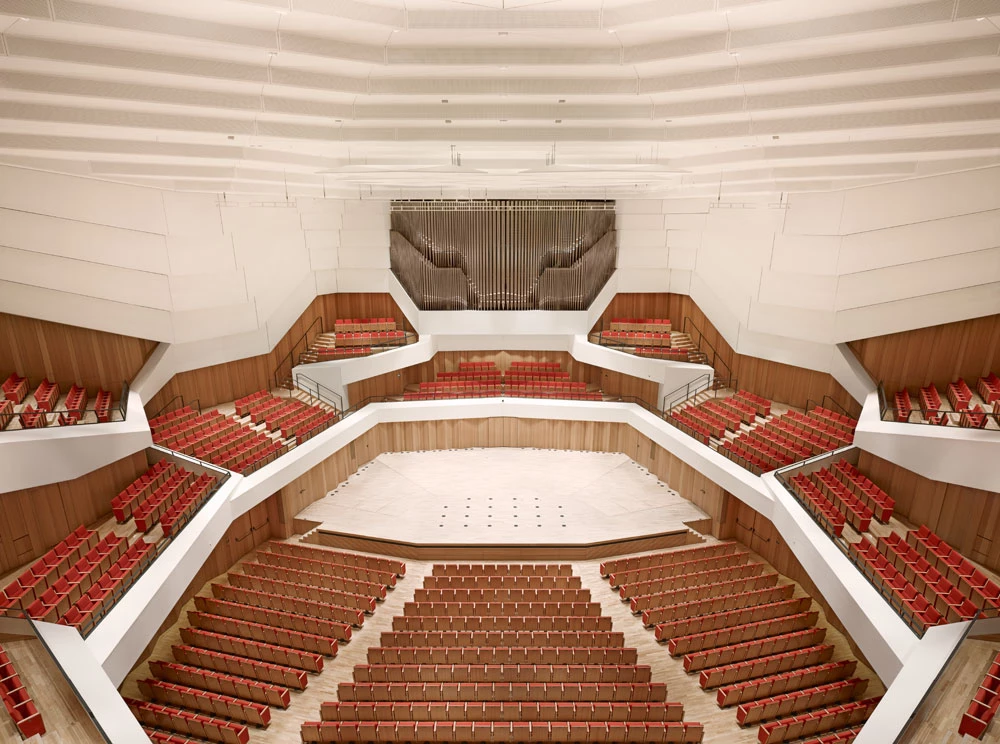 The main space, a large glass-enclosed foyer, is thought out to take in a large audience and to connect the concert hall directly with the Altmarkt square, a strategic hub of city life.