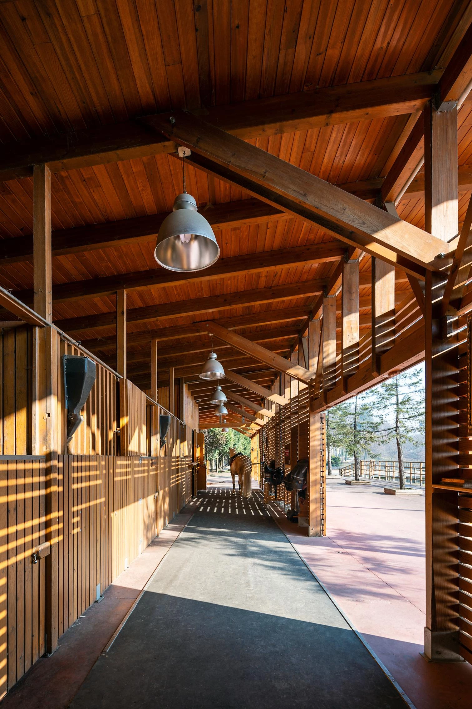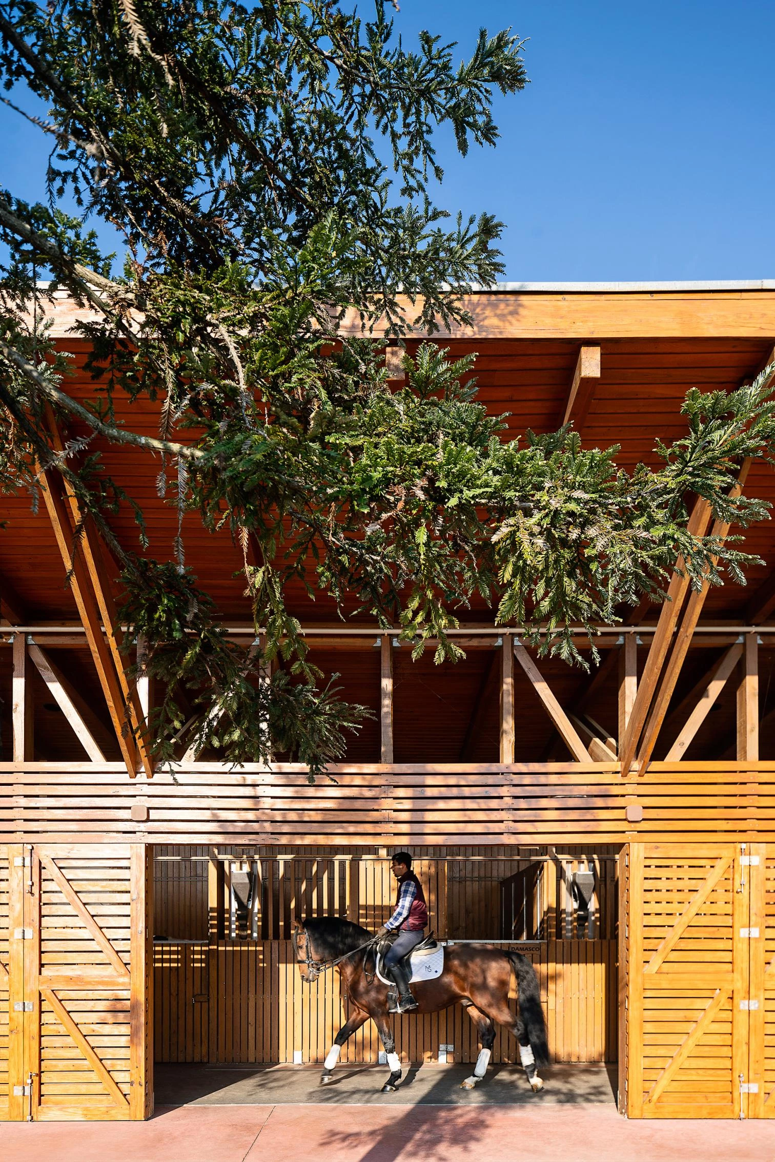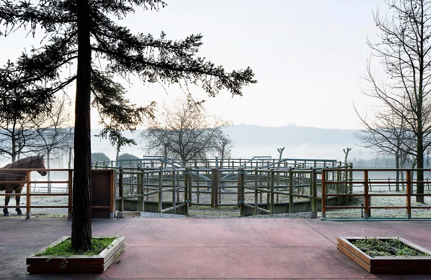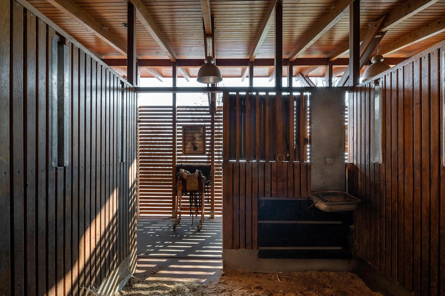São Cosme do Vale, a parish within the municipality of Vila Nova de Famalicão, in northwestern Portugal's Braga District, is the location of an equestrian center by Visioarq Arquitectos (Nuno Poiarez, Pedro Afonso, Vicente Gouveia). The idea was to insert the complex into the natural environment with a high dose of respect. The school is broken up into stables and two riding tracks – one covered, the other open-air. Pinewood is the main material, used in structure and claddings alike. The loadbearing elements are clearly the centerpieces. Everything else unfolds from them. Through a combination of simplicity and functionality, the riding academy was given an identity of its own.