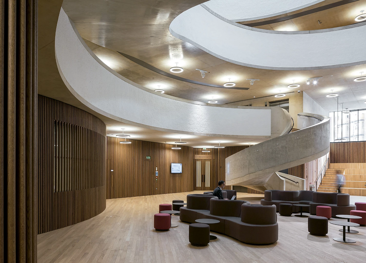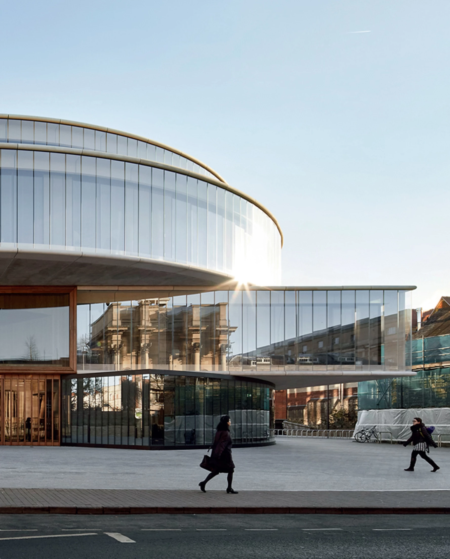 Prominently located at the southwest corner of the Radcliffe Observatory Quarter (ROQ), the School will be the first building people see when approaching this quarter from the south, and so has the potential to become a gateway into this new part of the University and a symbol of its development. The immediate context is a complex situation with the adjacencies of St Paul’s Church and Somerville College to both sides and the Oxford University Press across Walton Street. Its cylindrical shapes show analogies to government buildings and universities around the world.