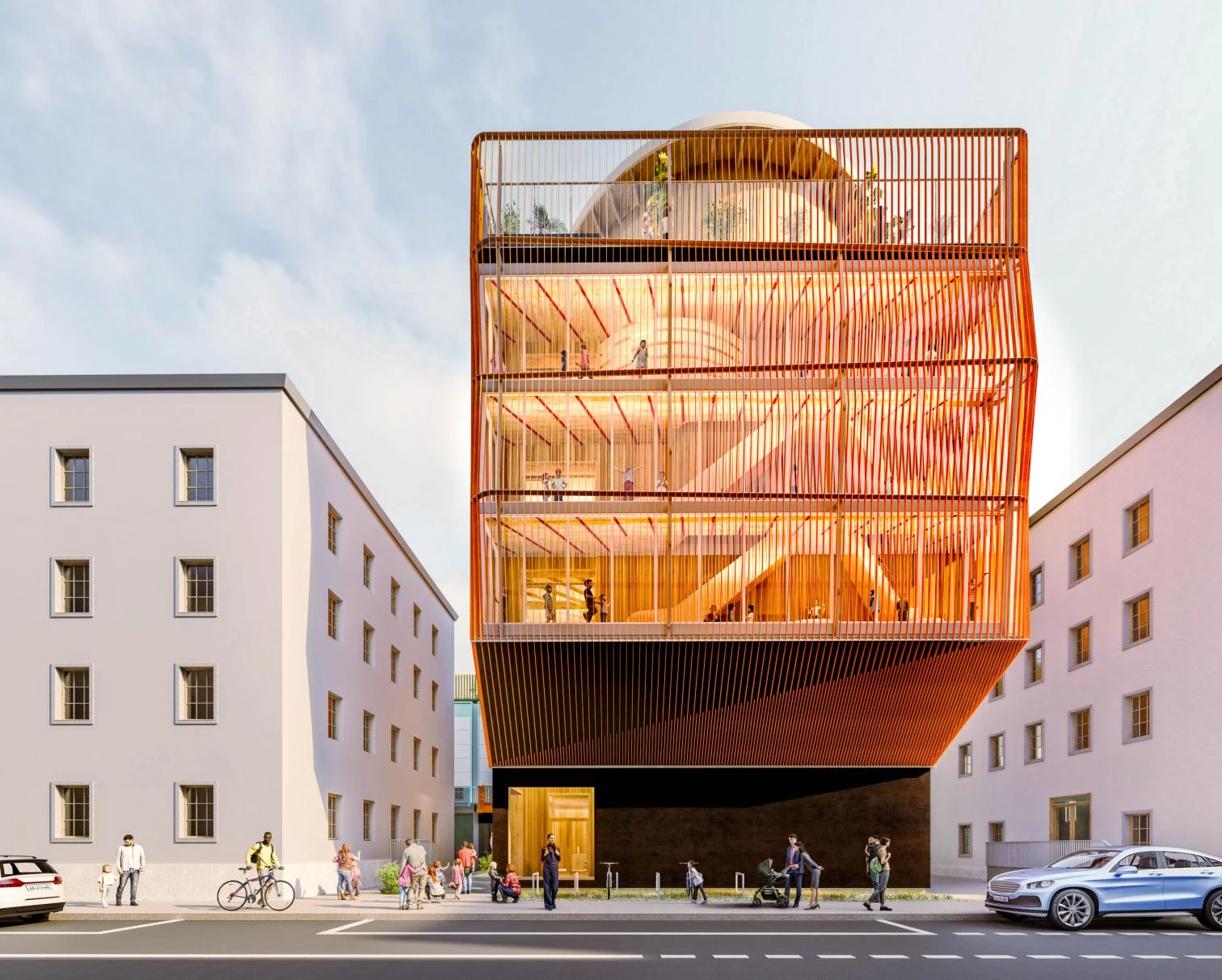 In collaboration with the Austrian firm Hermann Kaufmann + Partner, experts in wood construction, the new building on the TUM campus will be raised mostly with timber, always in keeping with the local norms and standards of energy efficiency, thermal comfort, fire protection, and acoustics, the aim being to minimize the building carbon footprint.