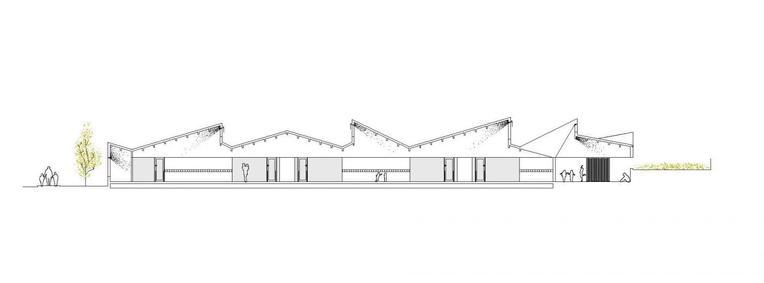 The south band contains the classrooms. Slightly square-shaped, each one of them has a play area from side to side, a hygiene area, and a resting area. The hygiene area, along the facade, offers control, daylight and natural ventilation. The resting area, towards the interior, creates an ideal space for audiovisuals or, simply, permits organizing the classroom into different areas.