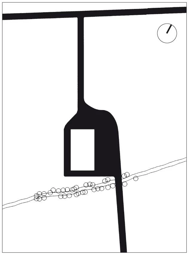 To blur its volume within the garden landscape, the workshop is concealed behind a translucent enclosure of corrugated metal, perforated sheet and polycarbonate, upon which the carriages cast their shadows.