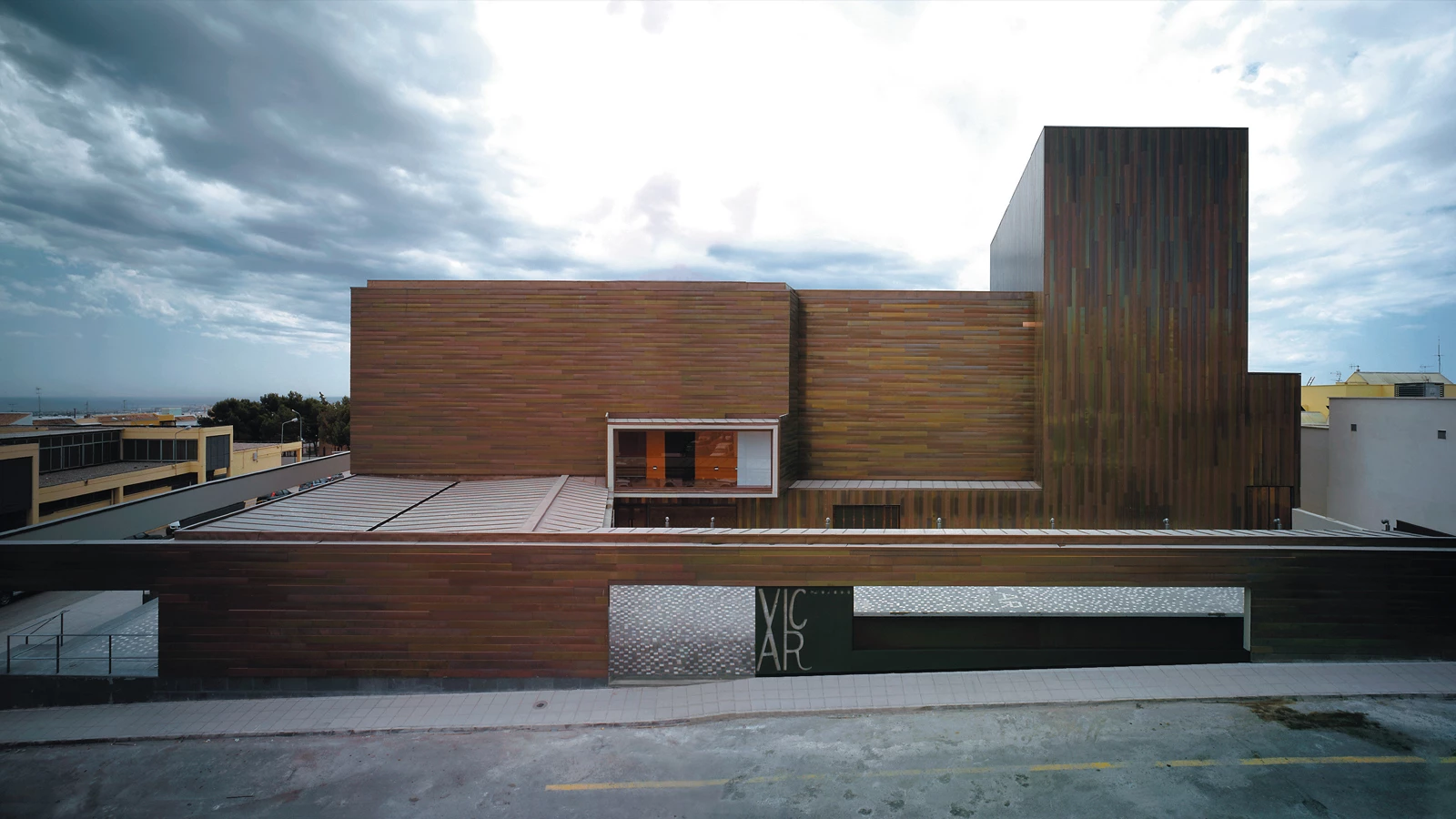 After the colonization of the Campo de Dalías by greenhouses, whose translucent plastic covers compose the image of a compact mosaic that recalls an artificial sea, the next step was the construction of facilities for the towns in the western area of Almería. It is within this program that the Performing Arts Center of Vícar rises, in a town that lies on the Sierra de Gándor mountainside.