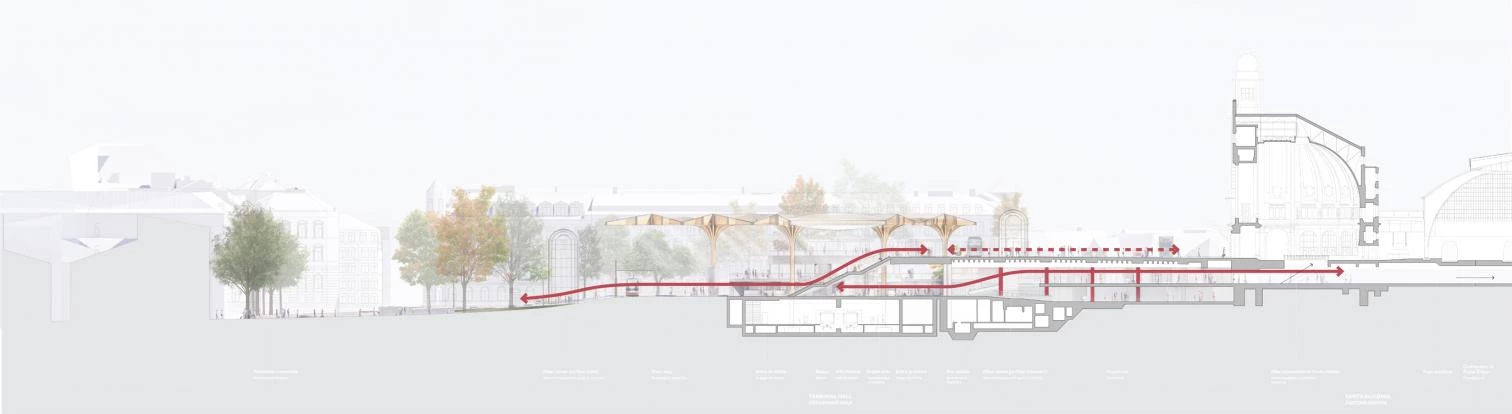 Triggered by the activation of a new tram line and predictions that numbers of visitors to the city will increase by 200%, the future terminal will prioritize transport systems where carbon emissions are low, and will also link up with Prague’s planned bike network.