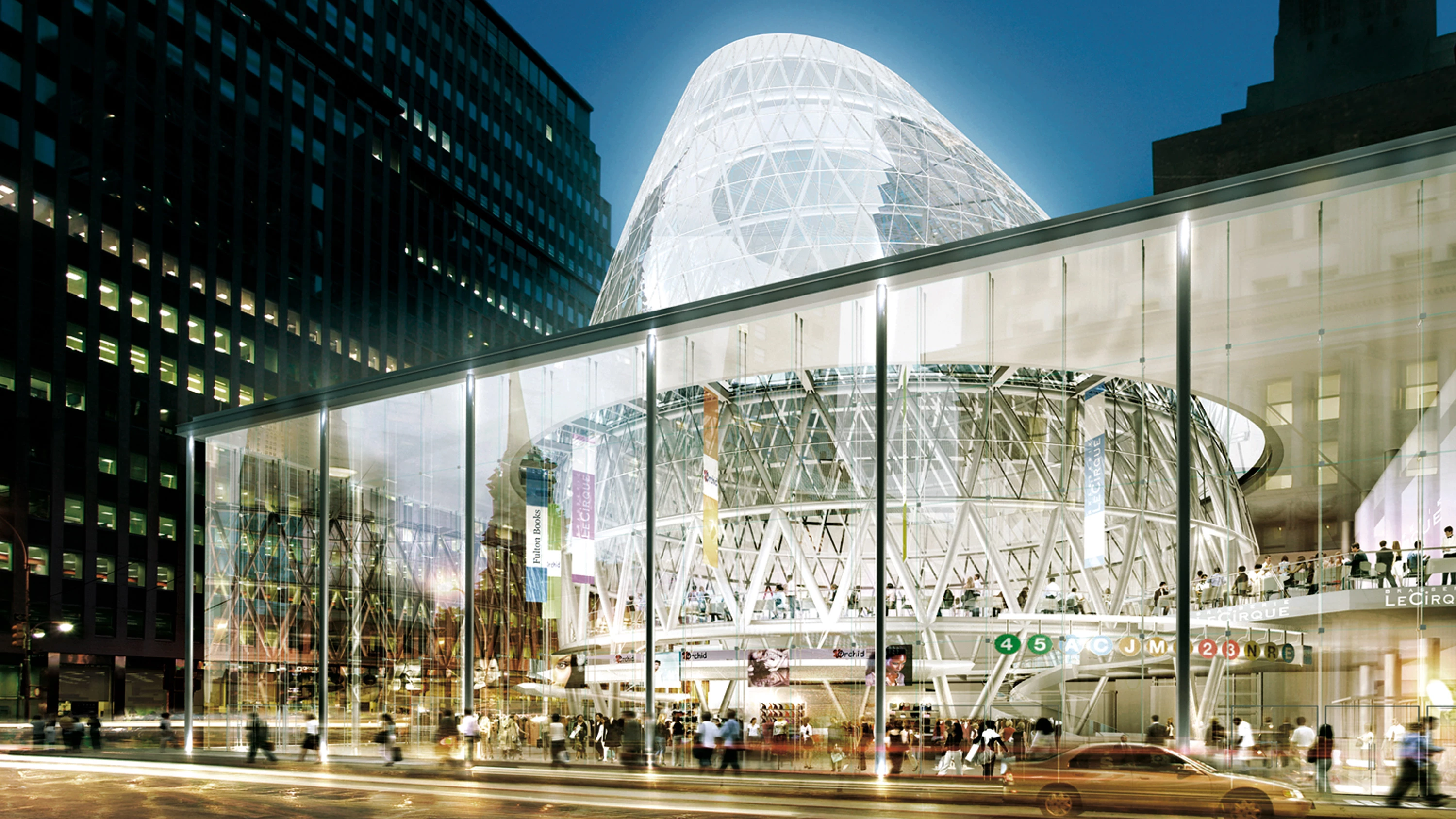 Situada entre las calles Broadway y Fulton, el nuevo edificio enlazará las estaciones de nueve líneas de metro y se conectará a la terminal PATH de la Zona Cero, diseñada por Santiago Calatrava, a través de un paseo subterráneo. Una cúpula de vidrio conforma de tronco de cono y 15 metros de altura introducirá luz natural al interior y se convertirá en el icono de toda la operación...[+]