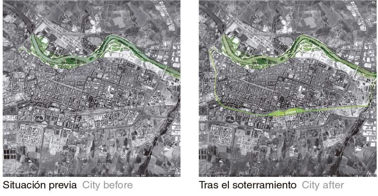 Burying the platforms allows to make the most of a vast urban space that can help recover the spatial, ecological and landscape value of those sections of the city that were disrupted by the train tracks.