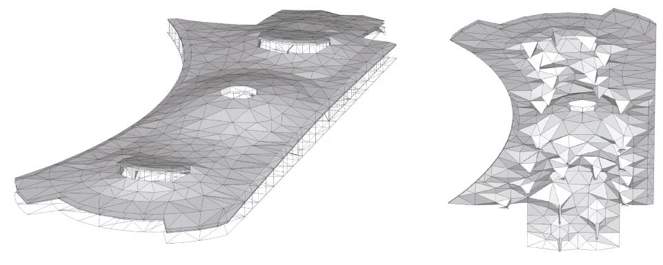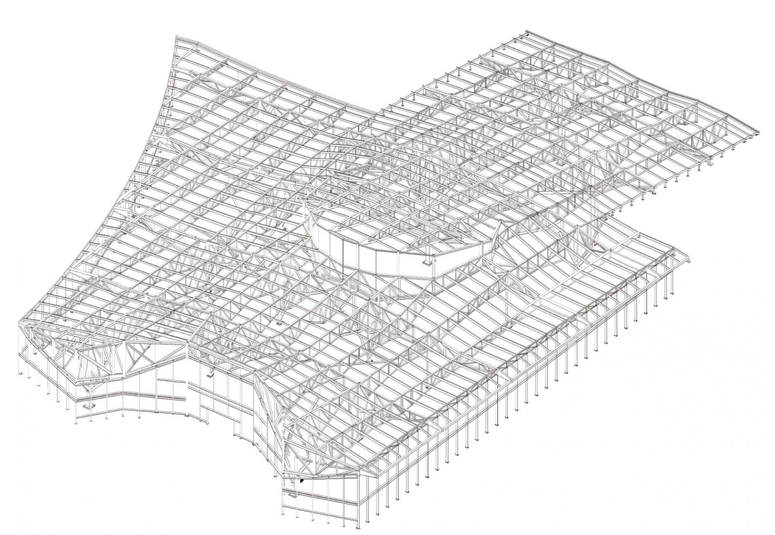 The roof structure is determined by the need to span the railway tunnel and to maintain a regular interval of three meters between the metallic support belts of the mixed concrete-sheet slab that configures the slope.