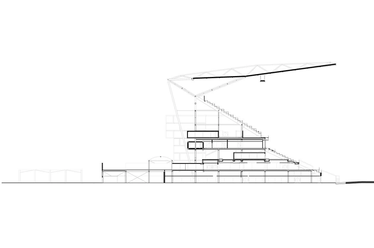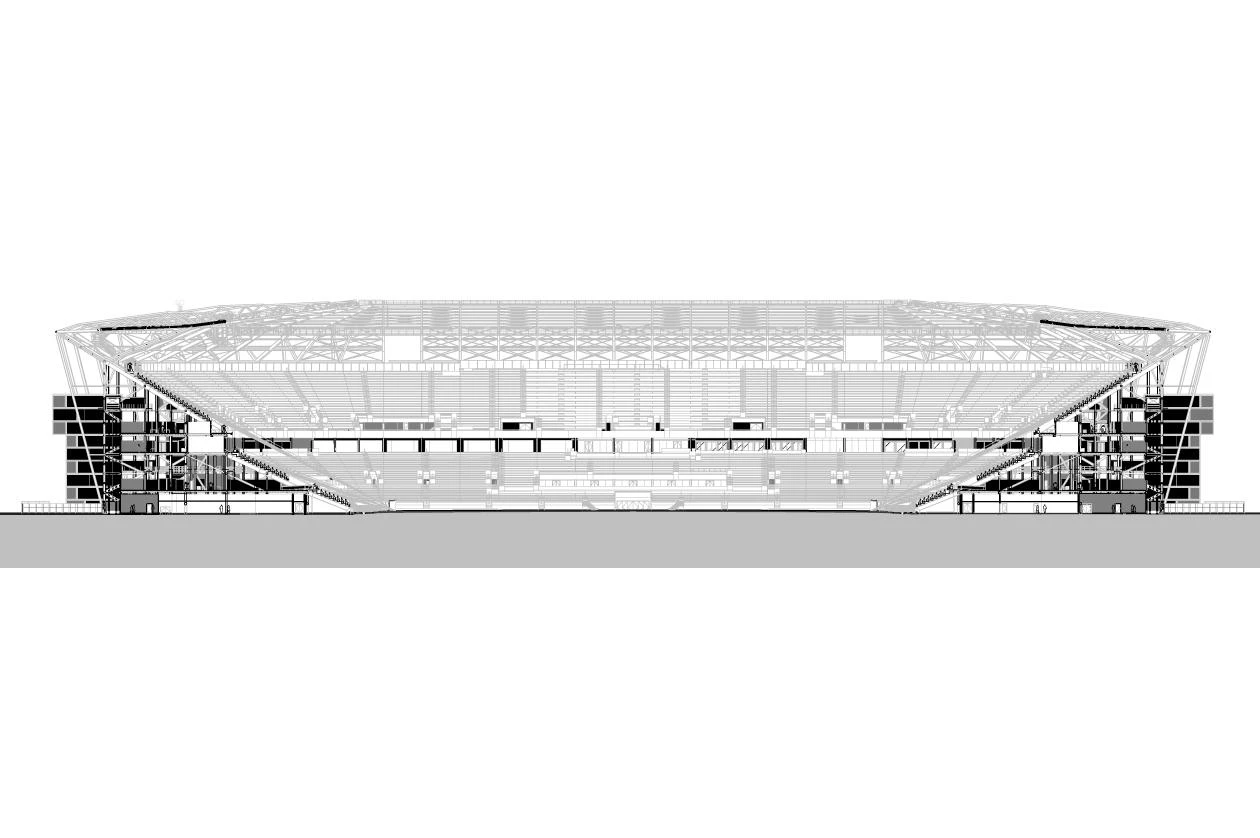 The project gives a new value to the characteristic chromatic palette of ports and transport centers, associating the bright colors of shipping containers to the different functional programs of the stadium, making them recognizable for spectators.