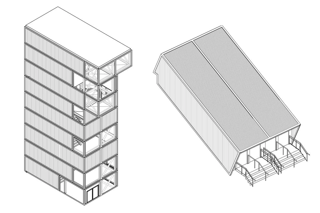 All the elements follow the ‘plug and play’ strategy that permits their prefabrication – even the interior installations and finishes are built in a workshop – and later connection to the general net, allowing in this way to reduce construction time and cost.