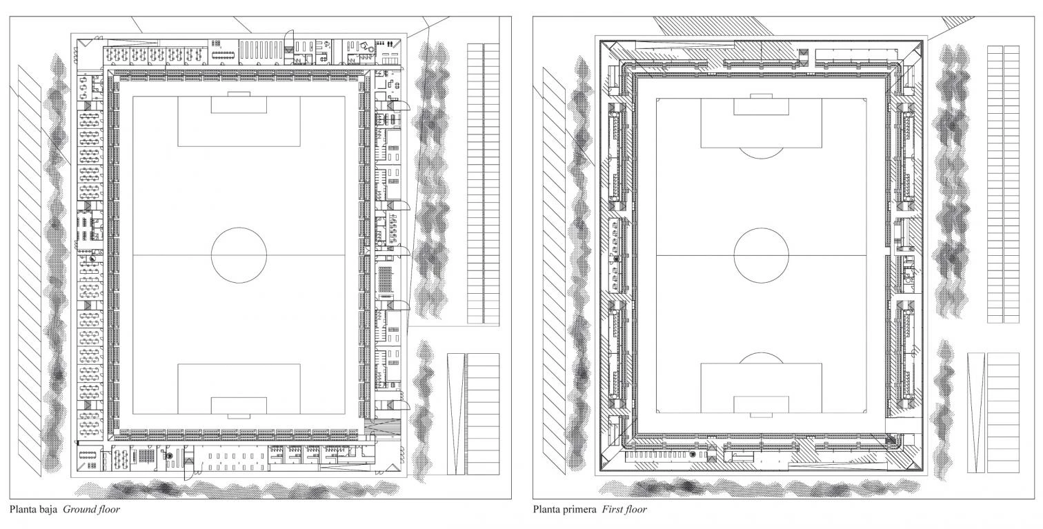 The project provides an interior rectangular space able to accommodate different types of public events, thereby managing to extend its use beyond each soccer season. For the new activities, the building gains versatility thanks to its mobile stands, which permit increasing the capacity of the stadium, generally 8,000 spectators, by 20 percent.