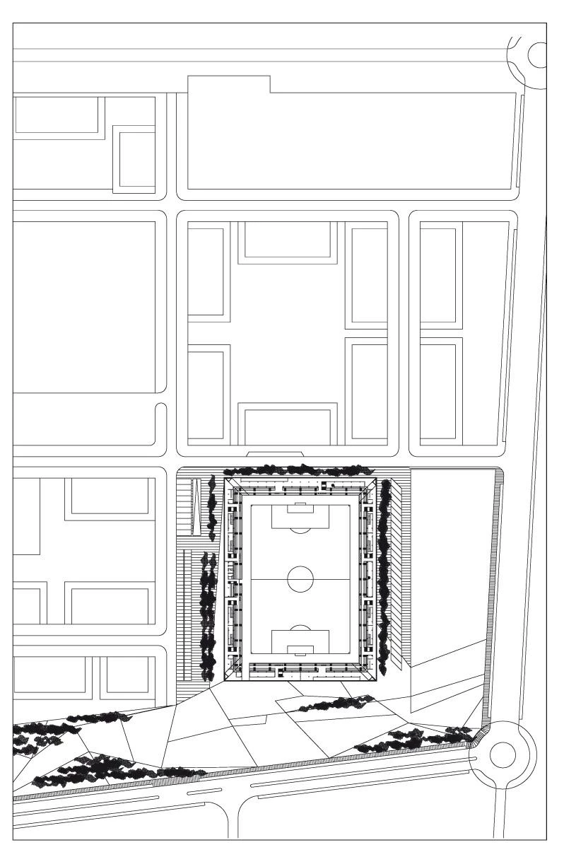 On the one hand it has an iconic function, both for its dimensions and for the visibility of the four lighting towers that mark the position of the corners of its footprint; on the other hand, and with regards to the urban fabric, the stadium sets itself apart from the idea of a single and intermitent use, rising as a multipurpose space that diversifies the use of the surface area, including offices and public premises at street level.
