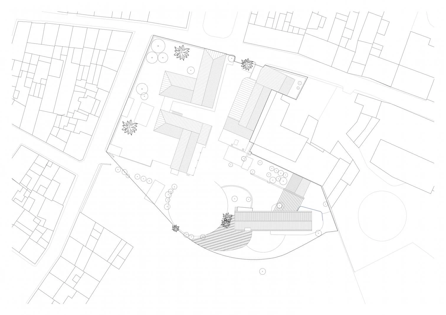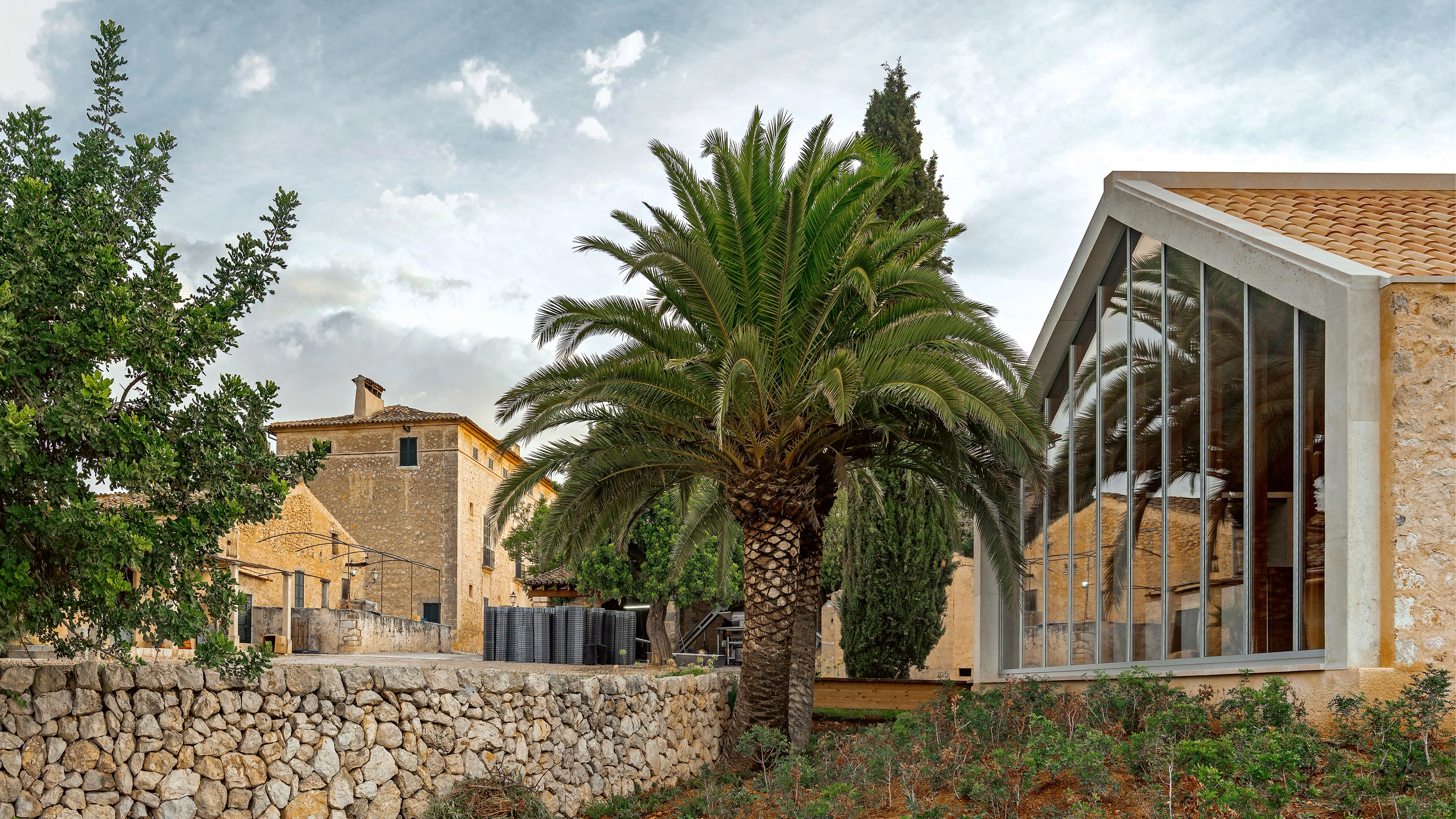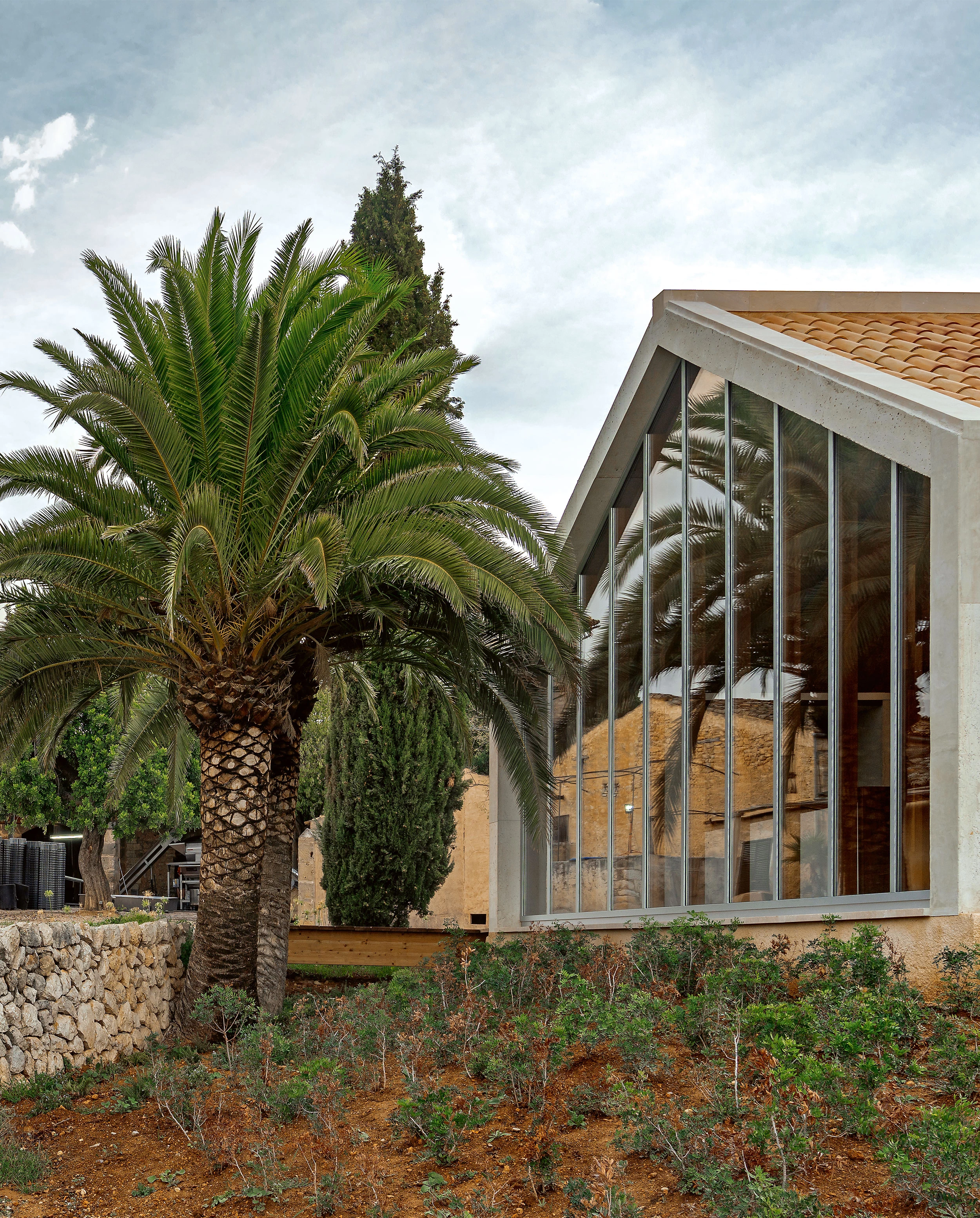 The winery, which was initially bound towards the town center by the Carrer de Muntanya and the Carrer de Sant Bartomeu, extending its property up to the vineyards on farmland, has remained isolated on urban ground and separated from the vineyards, so the expansion possible is reduced to a 1,800-square-meter tract of land, and is determined by a buildability ruling of 400 square meters above ground. The plot also treasures centennial cypress, carob, and palm trees.