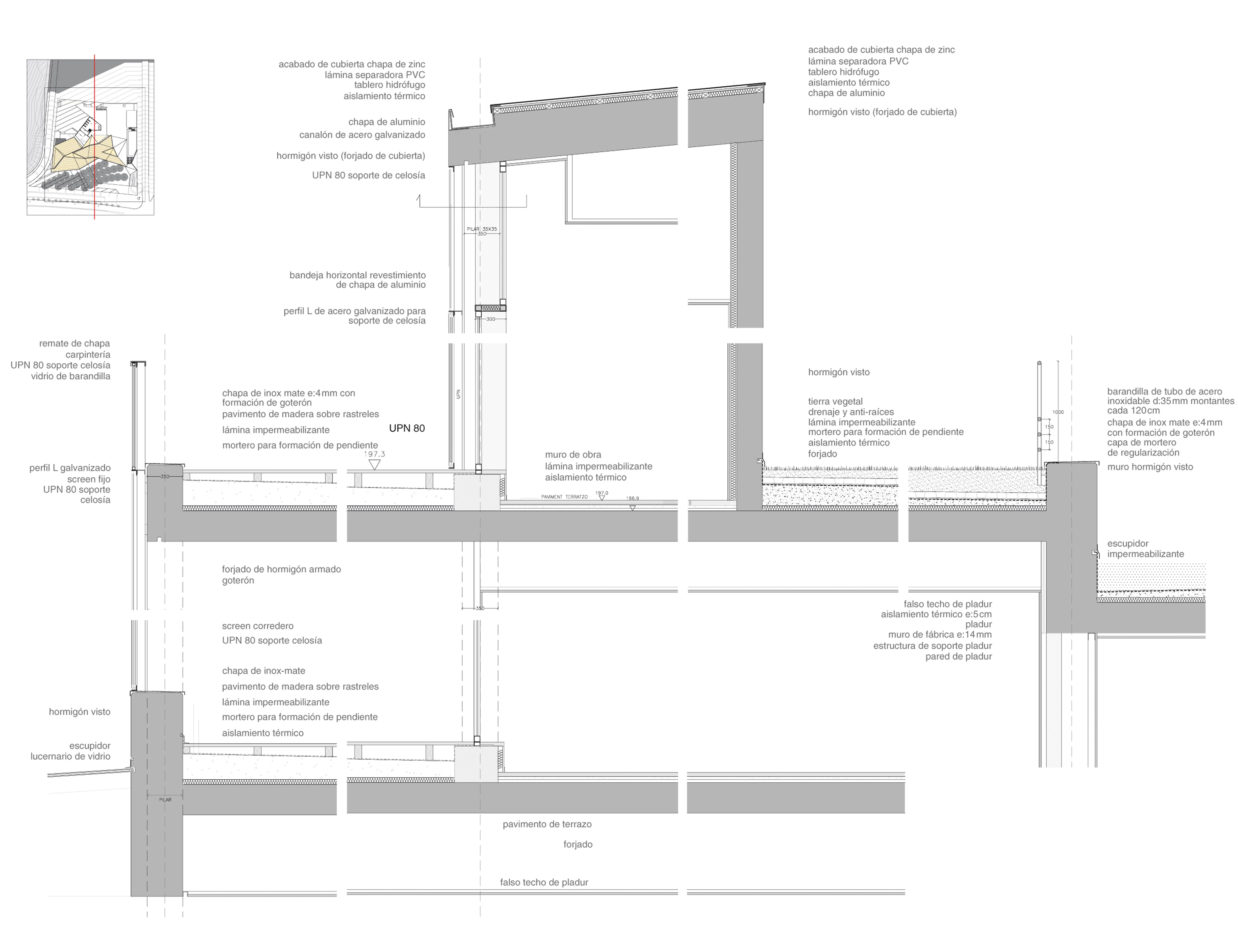 As for the Institute’s program, it is the specific one of an eye clinic, organized in floors of surgery rooms, offices, administration or study areas and parking. One of its special features is that most of its activity is carried out without natural light (offices, surgery rooms). On the contrary, light is essential in the waiting rooms and areas for rest or in the private workspaces. The building’s use defines an itinerary with different roofs and sun protection elements, arranging the parts of the program in accordance with the different needs of natural light: from the exterior spaces into the waiting rooms, so that natural light, intense and excessive on the outside, is subdued and comfortable when reaching the interior.