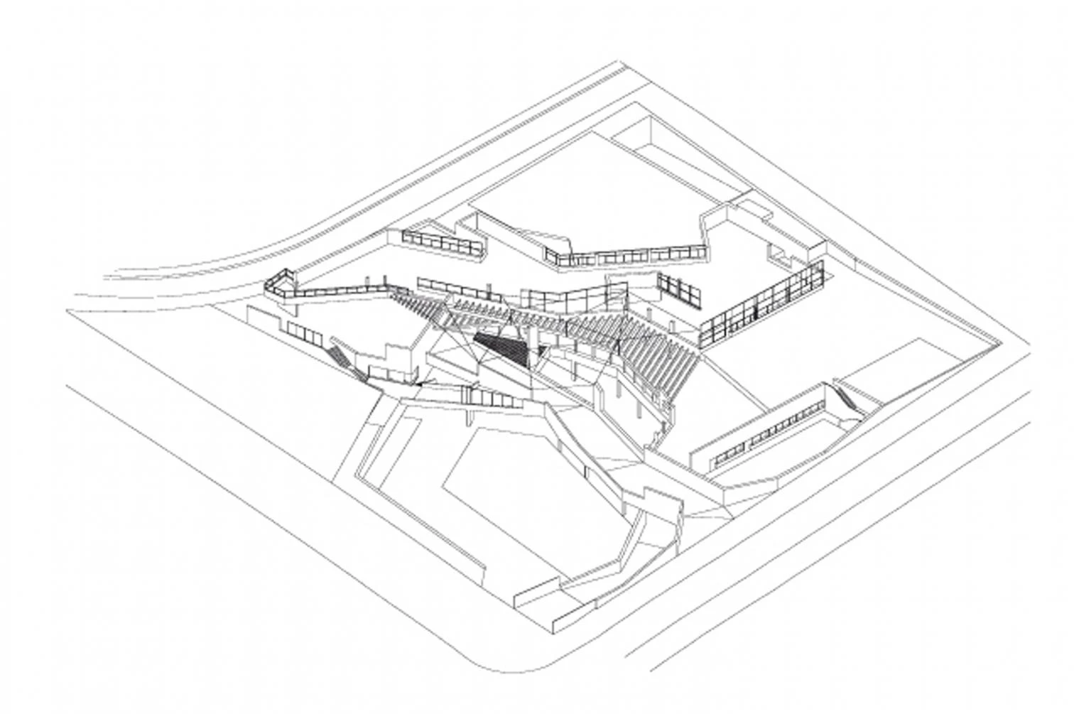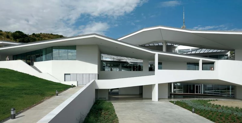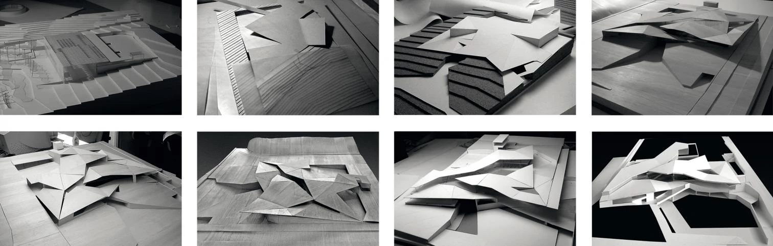 As far as the site is concerned, the center takes up a sloping plot located in Barcelona’s Ronda de Dalt, right along the frontier between the Collserola mountain range and the urban fabric of Barcelona, which is the boundary between the built city and the natural environment. The center is located on the side where the mountains rise, and should hence address conditions very different to those of the city. While the first alternatives considered the possibility of hiding or of slightly concealing the volume of the building behind a small forest, in the following ones, because it was necessary to push the building significantly forward with regards to the Ronda de Dalt, the options were all centered on using the topography or the slopes of the site as a tool to define the morphology of the building.