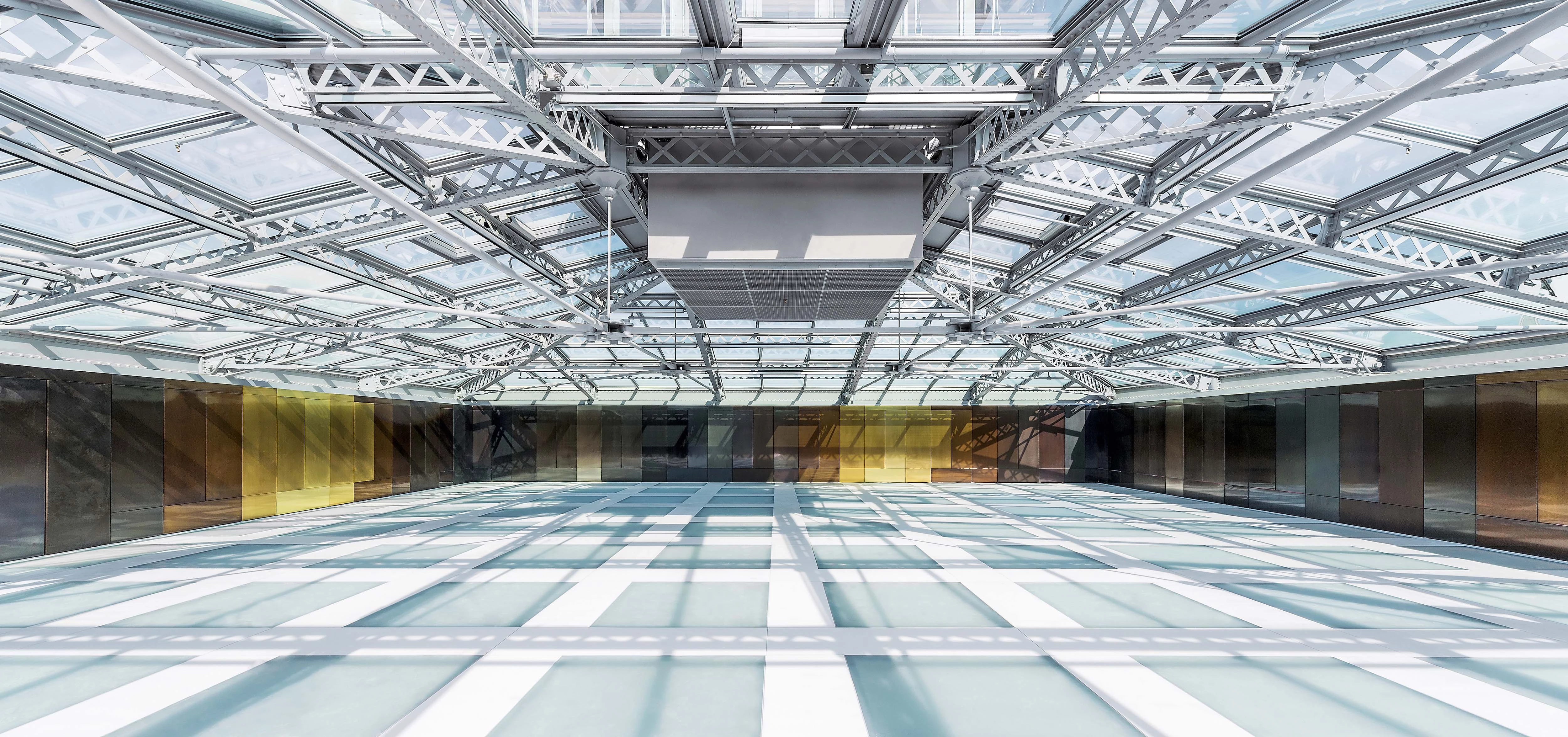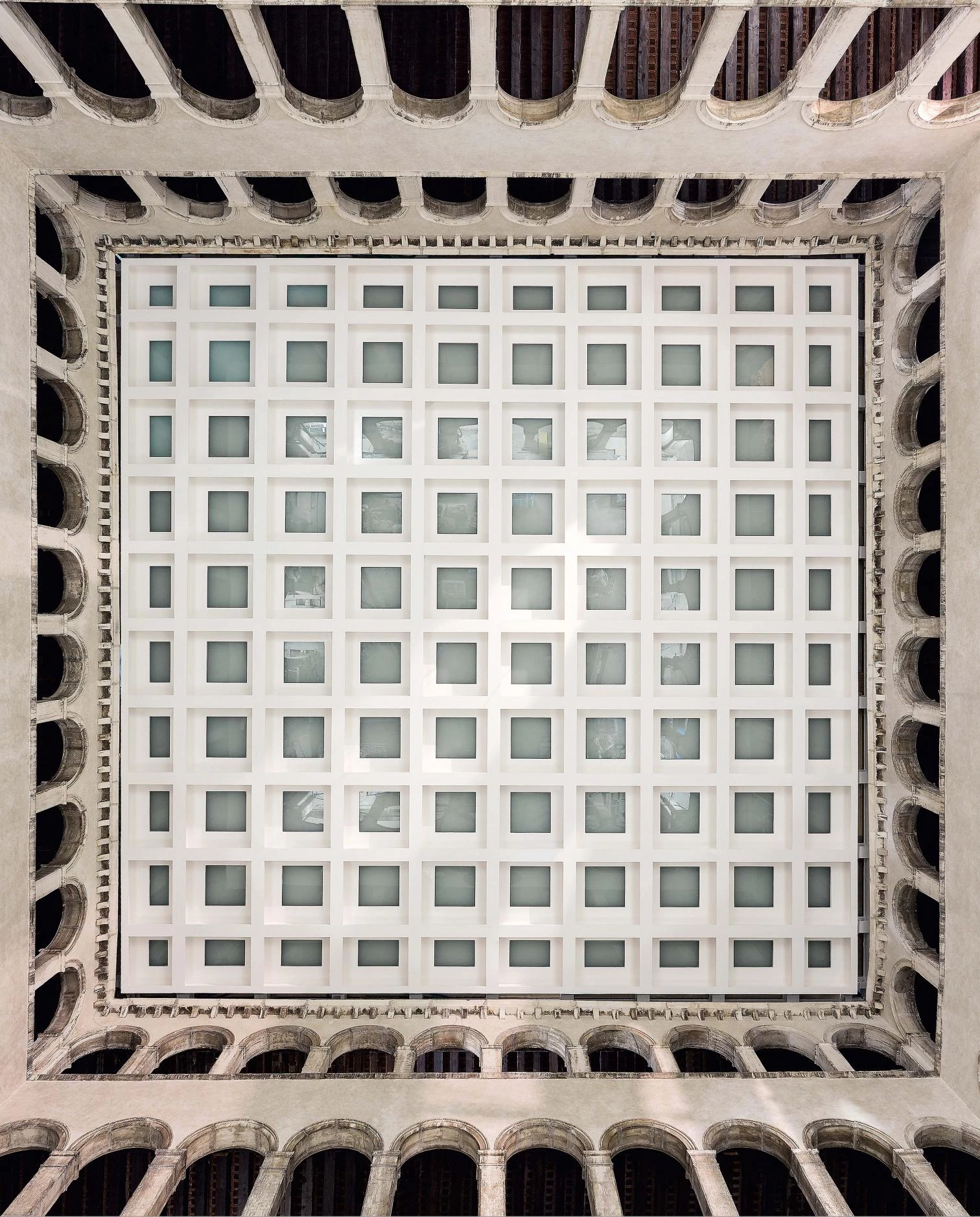 One of the most unique features of the building is the false ceiling that hangs over the inner courtyard, concealing the metal roof of the late 19th century to generate a new space that can be used as an events venue.