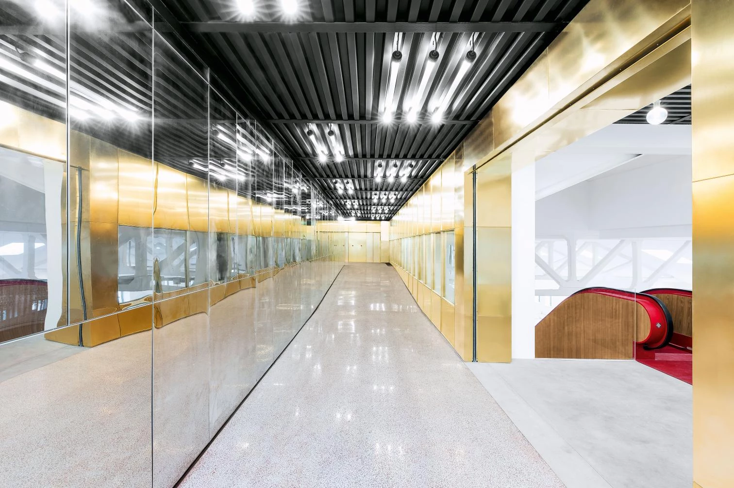The intervention involved cleaning the finishes in order to expose the traces of the passage of time, and installing the forceful but carefully composed escalators that permit movement from one gallery to another.