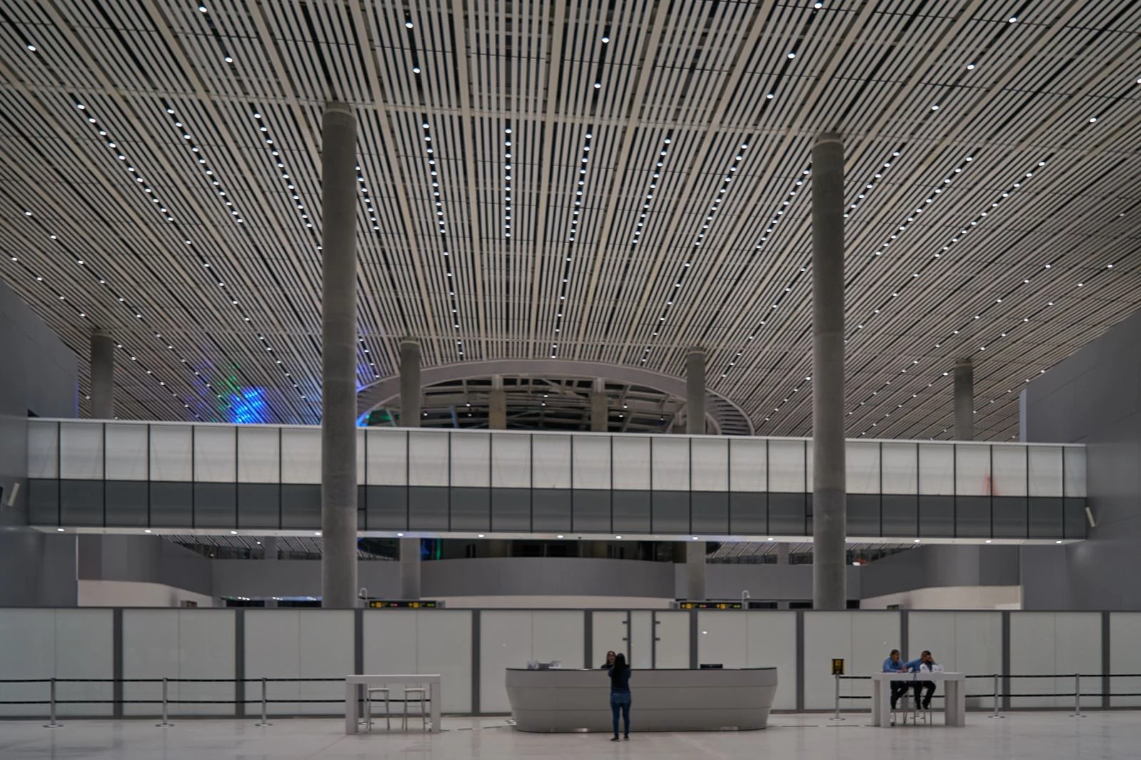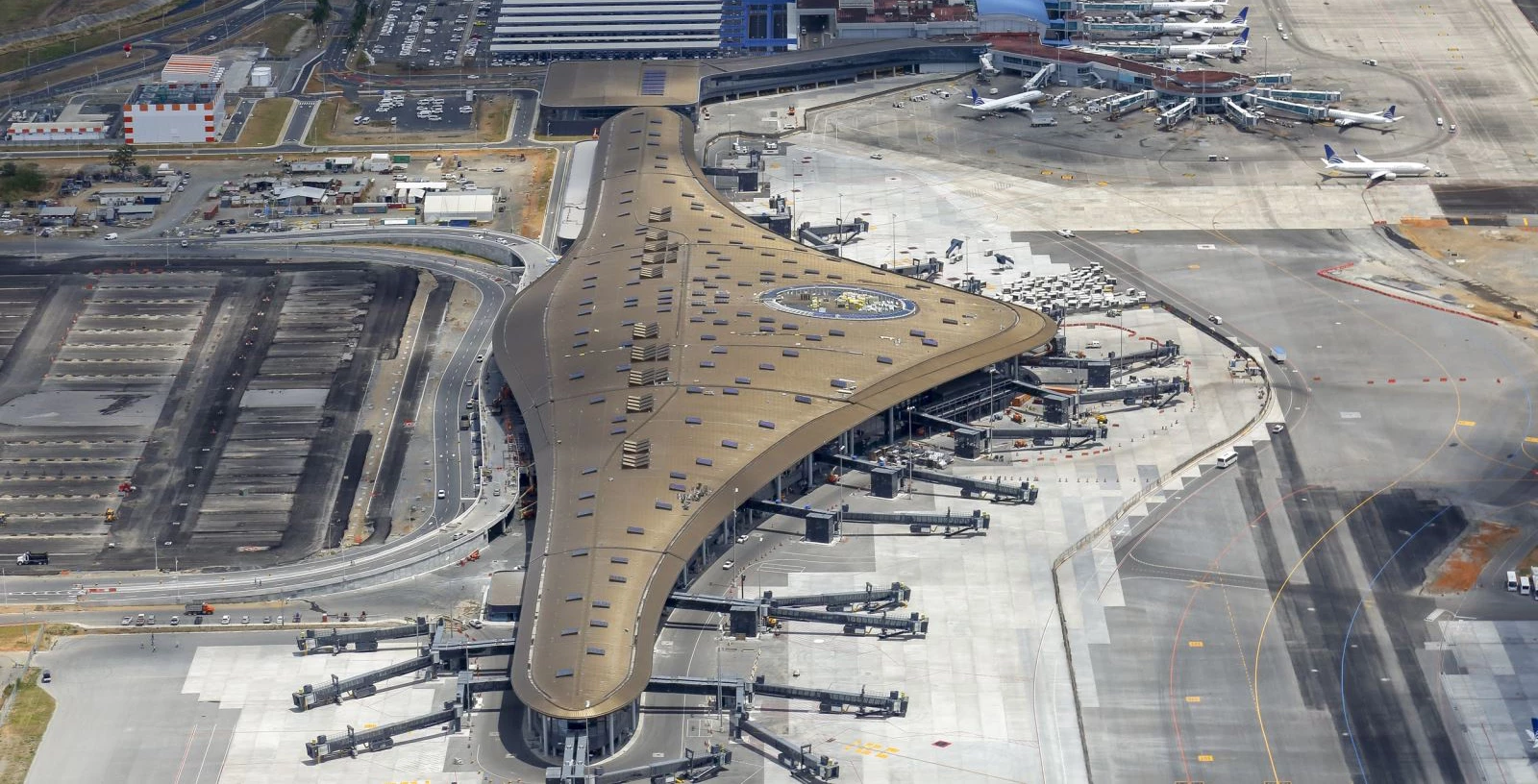 In March 2013, 24 kilometers from the center of Panama City, construction of Tocumen International Airport's Terminal 2 began. Phase 1 of Norman Foster's expansion was completed and operations started at the end of April 2019. Containing 85,000 square meters in four levels, the new infrastructure seeks to address the continued growth of passenger traffic and give the Central American's socioeconomic development and tourism a boost. Under a bronze roof that lets natural light in, two symmetrical wings stretch east and west. The curve of the facade makes for a large number of gates and minimizes walking distances.