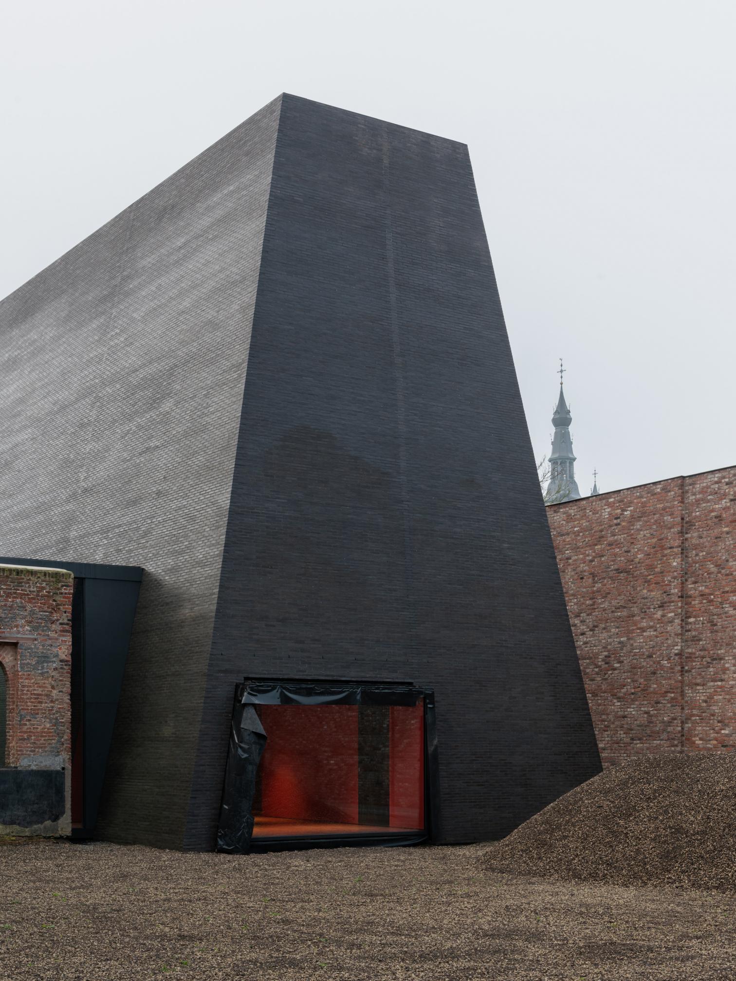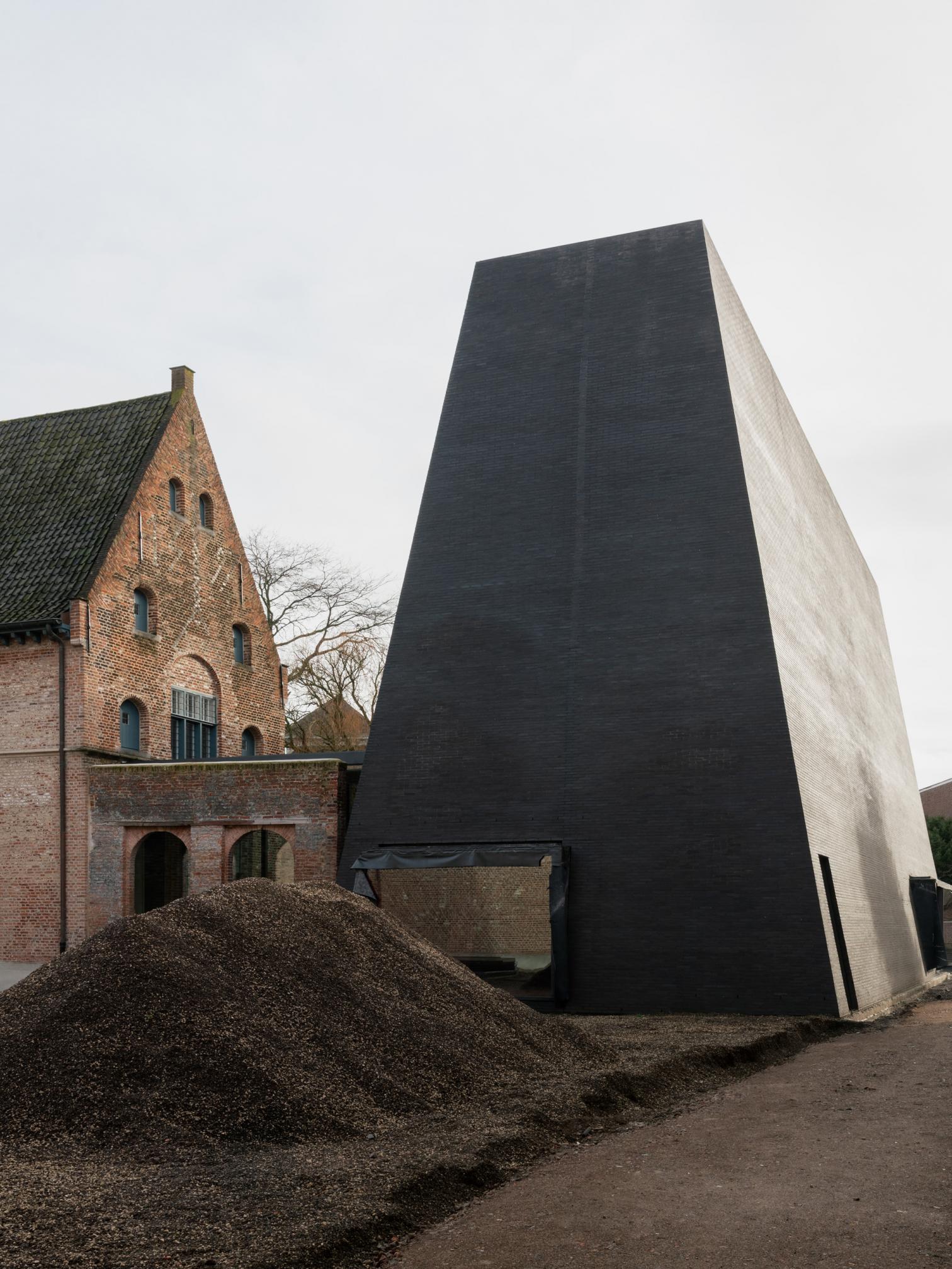 The project consolidates the chapel and the convent rooms, incorporates an underground exhibition space, and adds a pavilion clad in dark-toned bespoke bricks containing recycled materials. The distinctive truncated pyramid strikes up a dialogue with the historical constructions. Its geometry is a nod to the verticality of traditional steep roofs, while its orthogonal arrangement aligns with the compositional logic of the original premises.