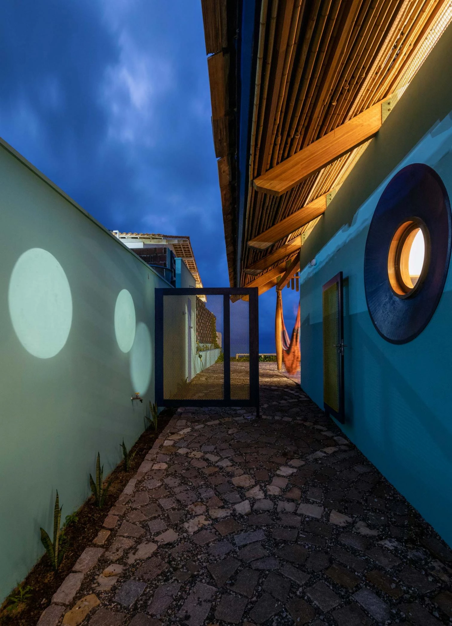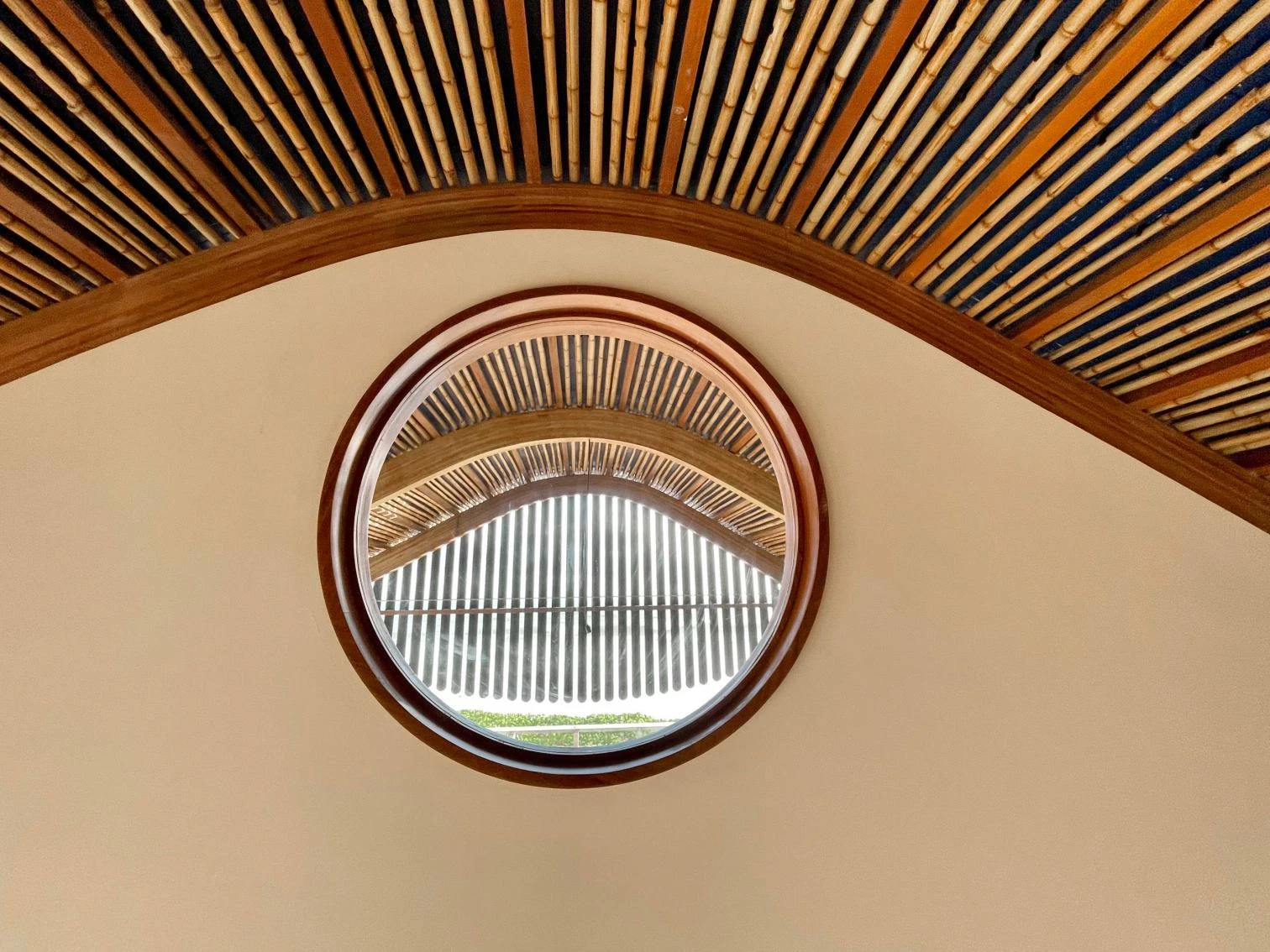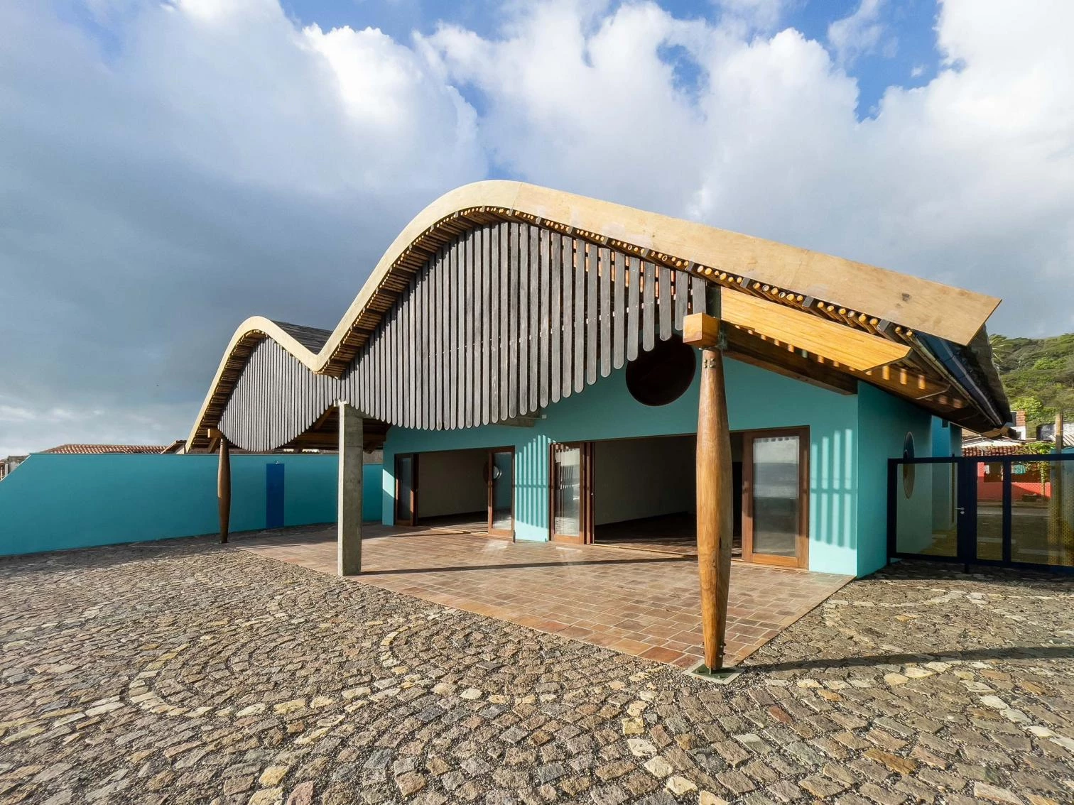 The scheme honors the memory of the anonymous architects who raised the Baroque cathedrals of cities like Olinda, in the south part of Baía Formosa, and were also shipbuilders. The vaults with curved beams of timber and bamboo recall the insides of sea vessels, with porthole windows and fish-scale floors.