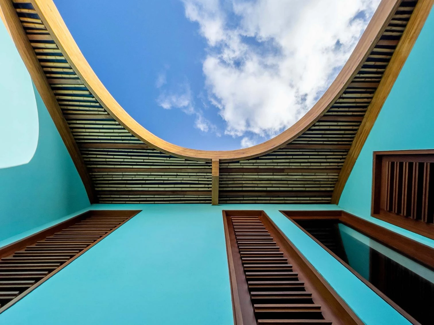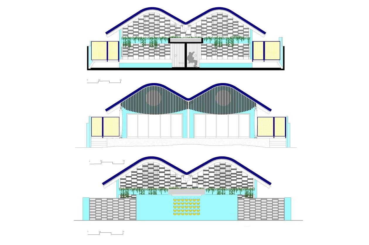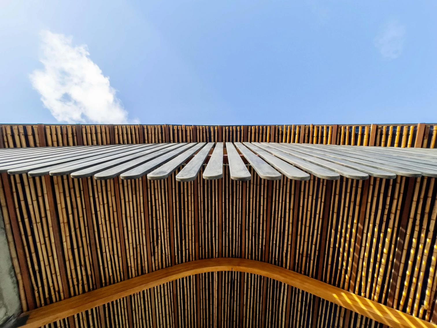 The scheme honors the memory of the anonymous architects who raised the Baroque cathedrals of cities like Olinda, in the south part of Baía Formosa, and were also shipbuilders. The vaults with curved beams of timber and bamboo recall the insides of sea vessels, with porthole windows and fish-scale floors.