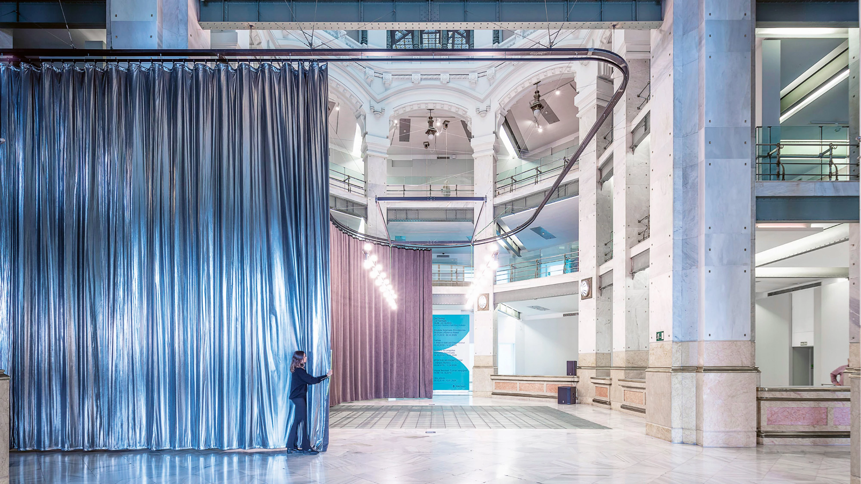 “Our Lady of Communications”: that is how Leon Trotsky, when he visited the Spanish capital, christened with irony the monumental building erected by Antonio Palacios and Joaquín Otamendi in the year 1919, and which the people of Madrid have ever since then considered a symbol of their city, to the point of transferring City Hall there in 2007. Such a change of use has come with function and representation problems, and these, precisely, provided the cues for an overhaul of several interconnected interior spaces. First, the entrance is a functional and symbolic doorway, and presents structures of stainless steel and glass that serve as a transparent film between the edifice and the city. Behind this is the information counter, with luminaires suspended over them that are an attraction in the iconic space of the historical operations hall. Then, finally, comes the central nave, surrounded by an ambulatory that leads to the rest of the building’s premises and services, and dominated by a system of curtains that allows flexible use of the space.