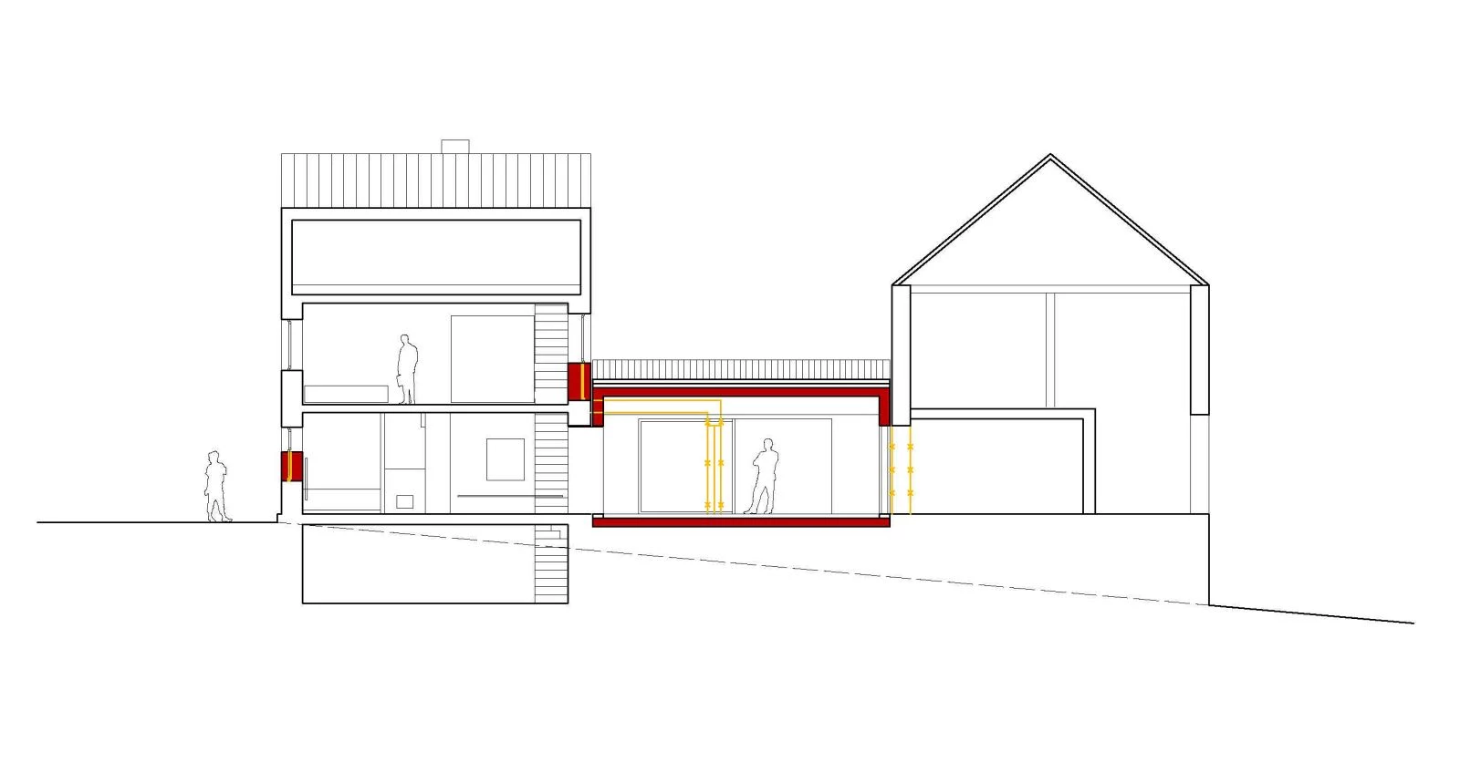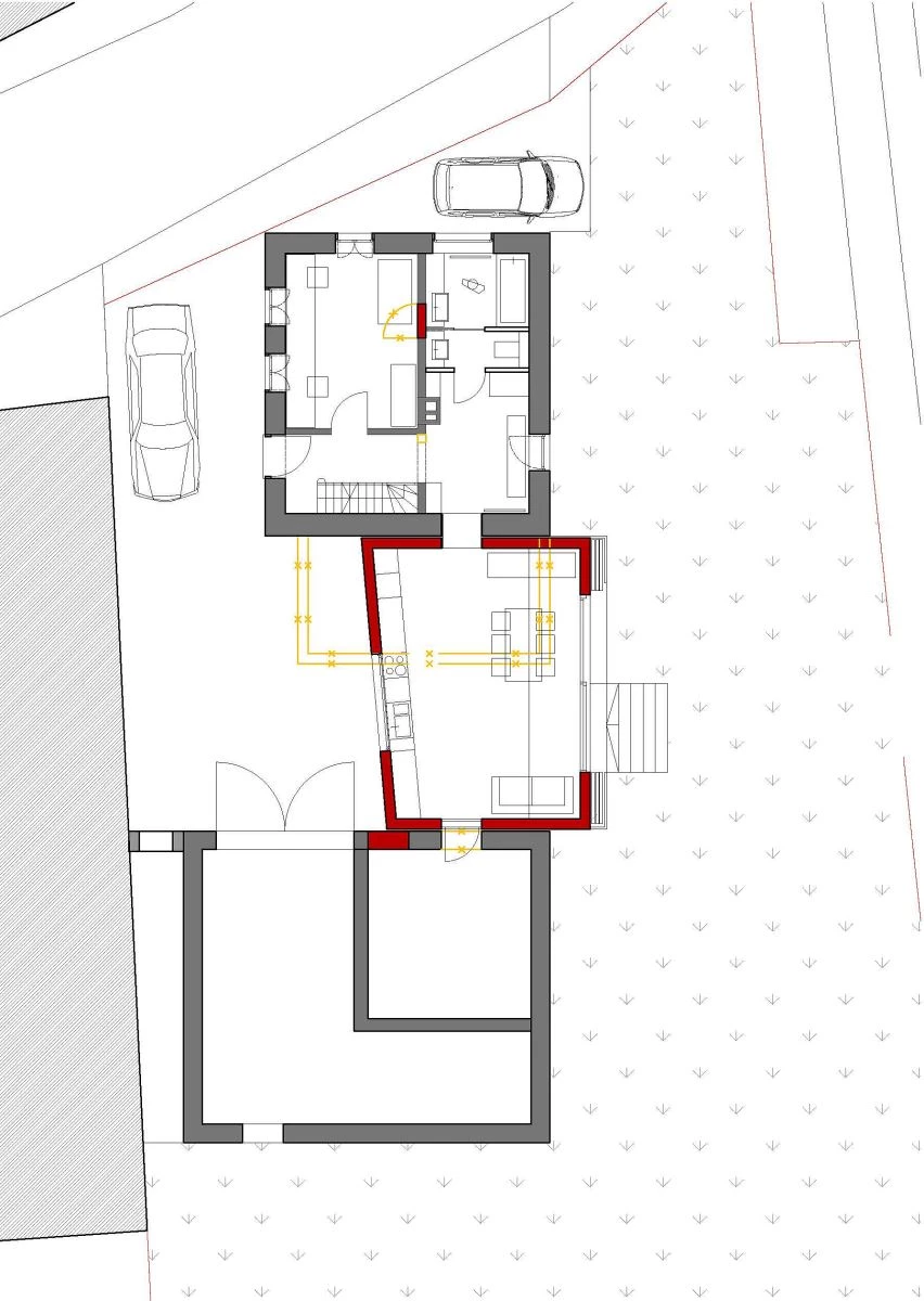 Following advanced technical standards with the aim of obtaining a passive construction, the volume that was inserted between the house and the barn in the 1950s has been replaced by a wooden piece of simple geometry, set slightly forward with respect to the preexisting structures. The old house contains the private rooms, and the wooden volume the shared spaces, including the kitchen.