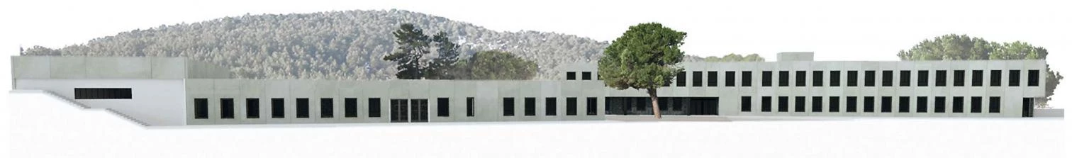 Located to the southwest of the Baix Llobregat county, in the province of Barcelona, Begues is a large municipality of wooded landscape that covers most of the Garraf Massif. It is very close to the capital, so its population has increased significantly, almost tripled, over the last two decades. This increase has made it necessary to build additional community facilities, like this new high school. The site assigned for the project is located at one end of the town; a triangular plot that is surrounded by the Begues roundabout and an industrial complex.