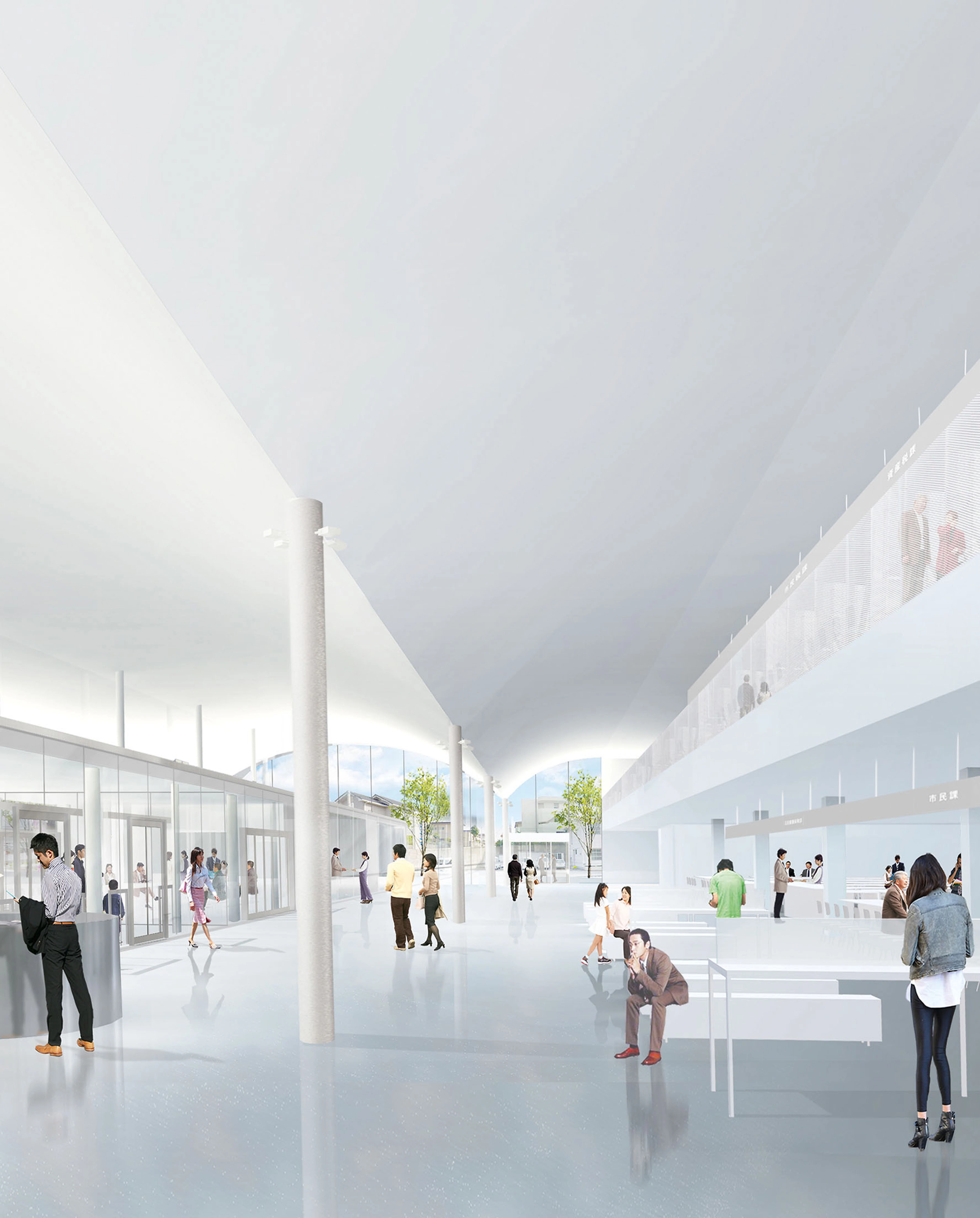 The new town hall building will go up on the site of the former, which suffered damage in the earthquake of 2011. The building is organized in two parts: a block of offices and meeting rooms, and a semiopen vaulted space with a varied program... [+]