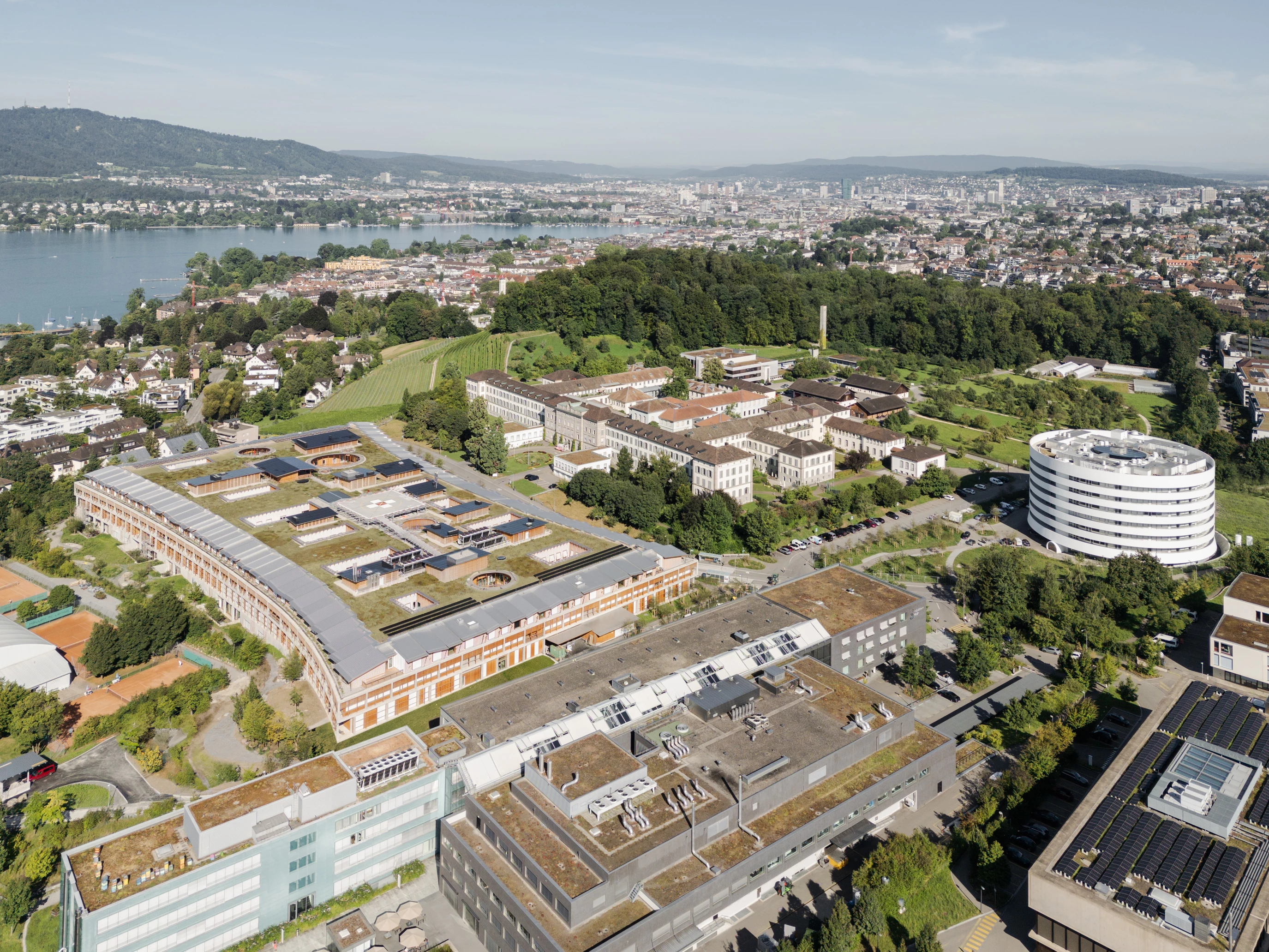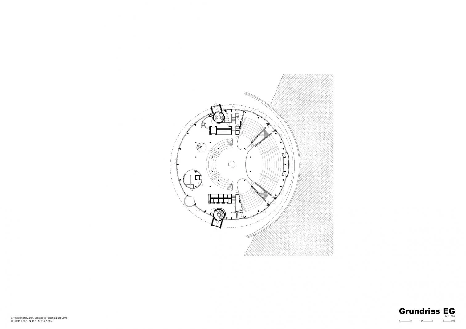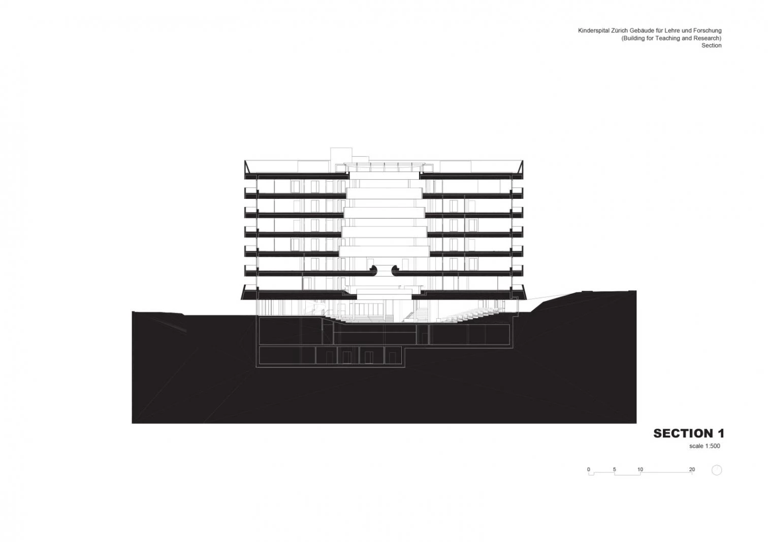The new University Children’s Hospital in Zürich-Lengg, Switzerland’s largest medical center for children and adolescents, comprises two buildings: a low-rise acute-care facility on the south plot, and a cylindrical construction for research and teaching on the north plot.