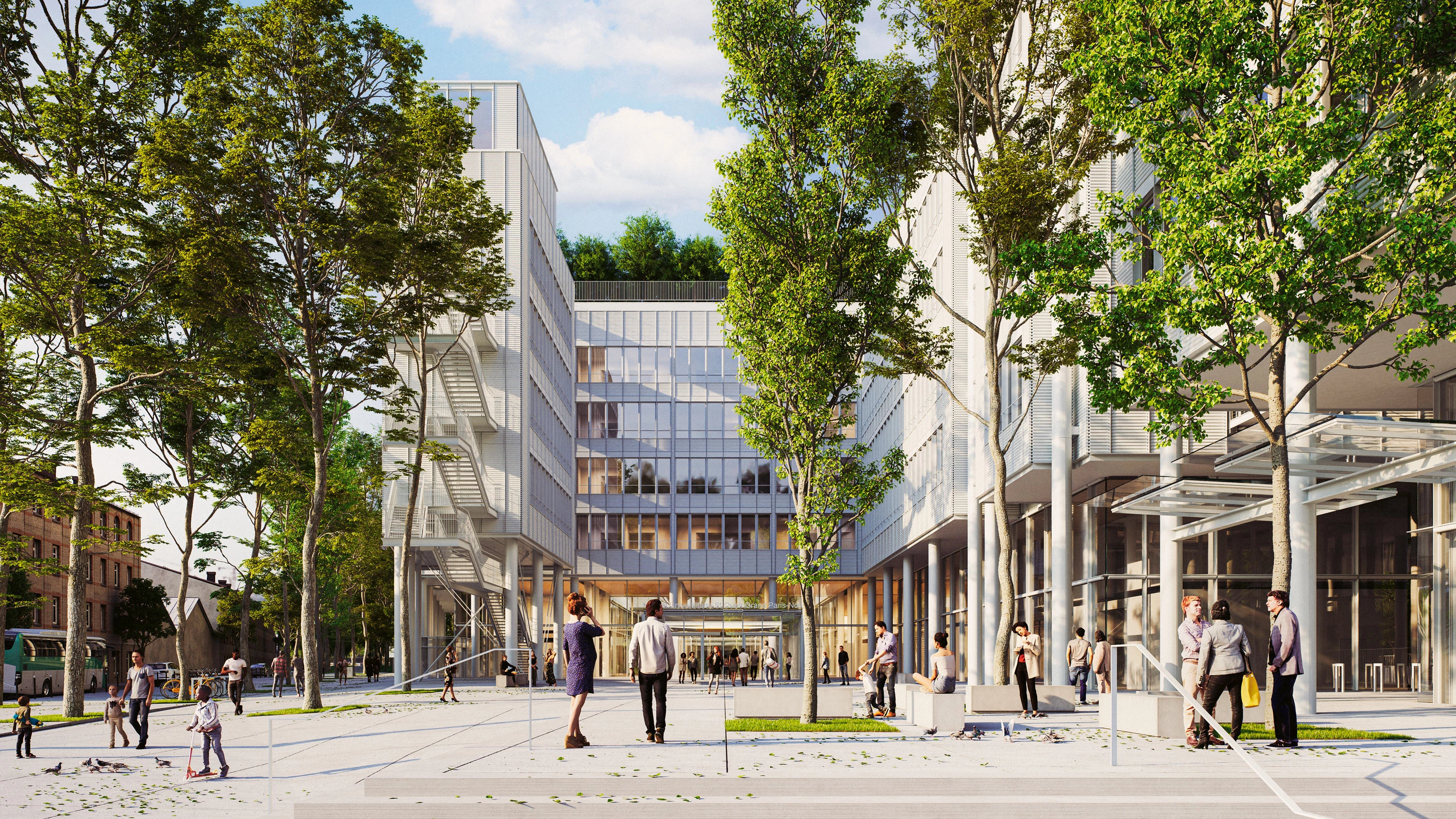 The compact campus envisioned to go up over an old Citroën factory will seal the merger of two hospitals in the suburbs of Paris, and serve as a center for medical university practicums.