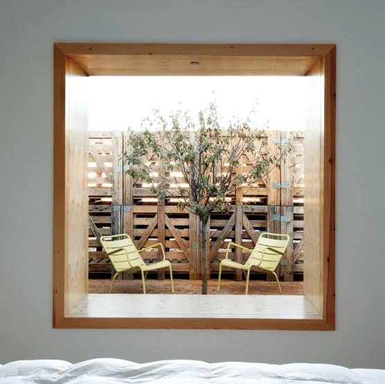 The windowsills become corners to read, watch television or contemplate the views; and perform as well as sofa or extra bed. Their orientation is mainly northeast to allow seeing the landscape without receiving direct sunlight.
