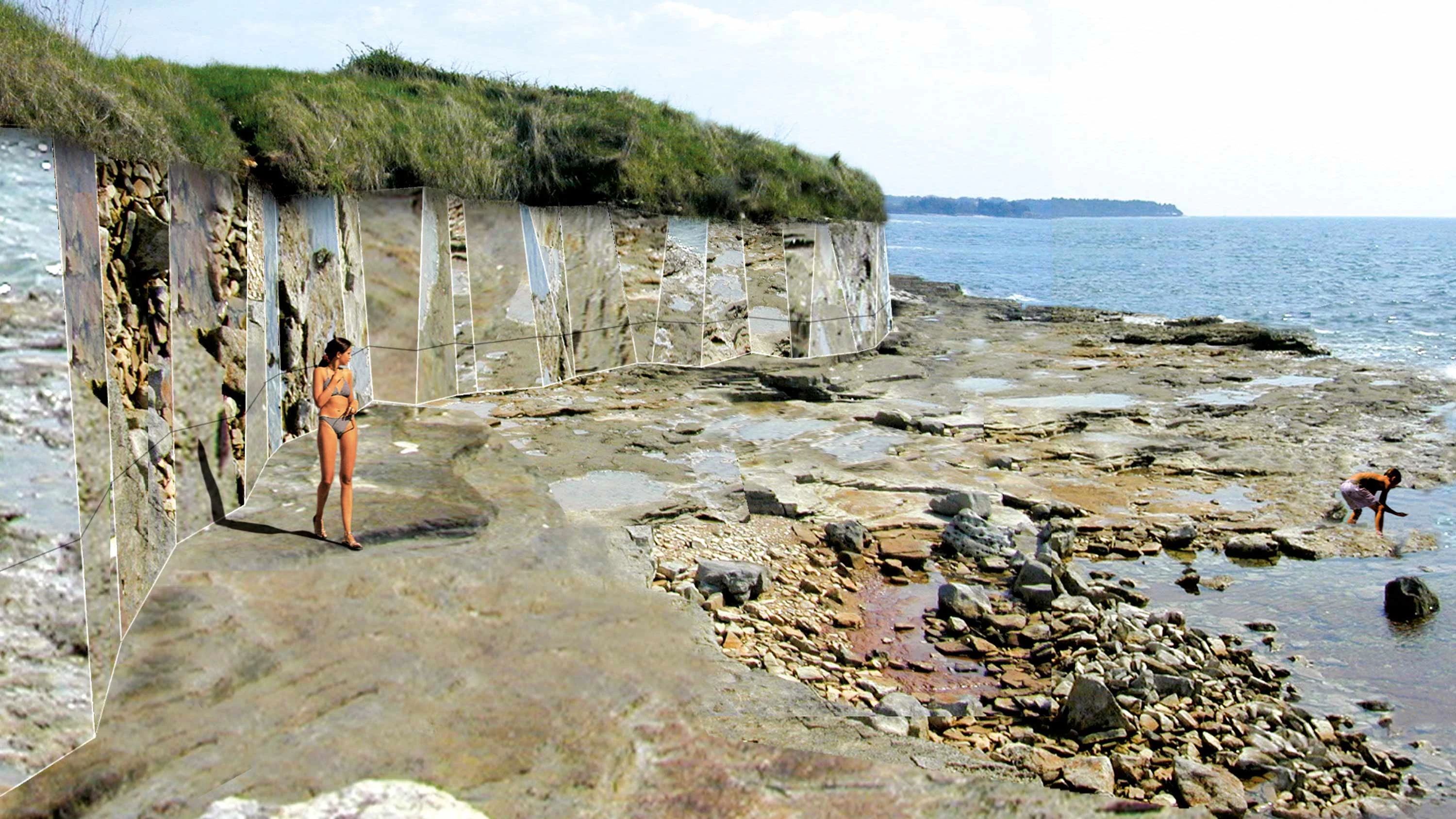 Con el fin de favorecer la percepción sobre el entorno privilegiado —una península rocosa dominada por una colina en su centro, bordeada por una larga playa de grava donde se alza un palacio del siglo XVIII junto a un puerto deportivo— las dependencias del hotel y las viviendas, de una, dos y tres habitaciones, se disponen semienterradas en bandas aterrazadas a lo largo de la costa... [+]