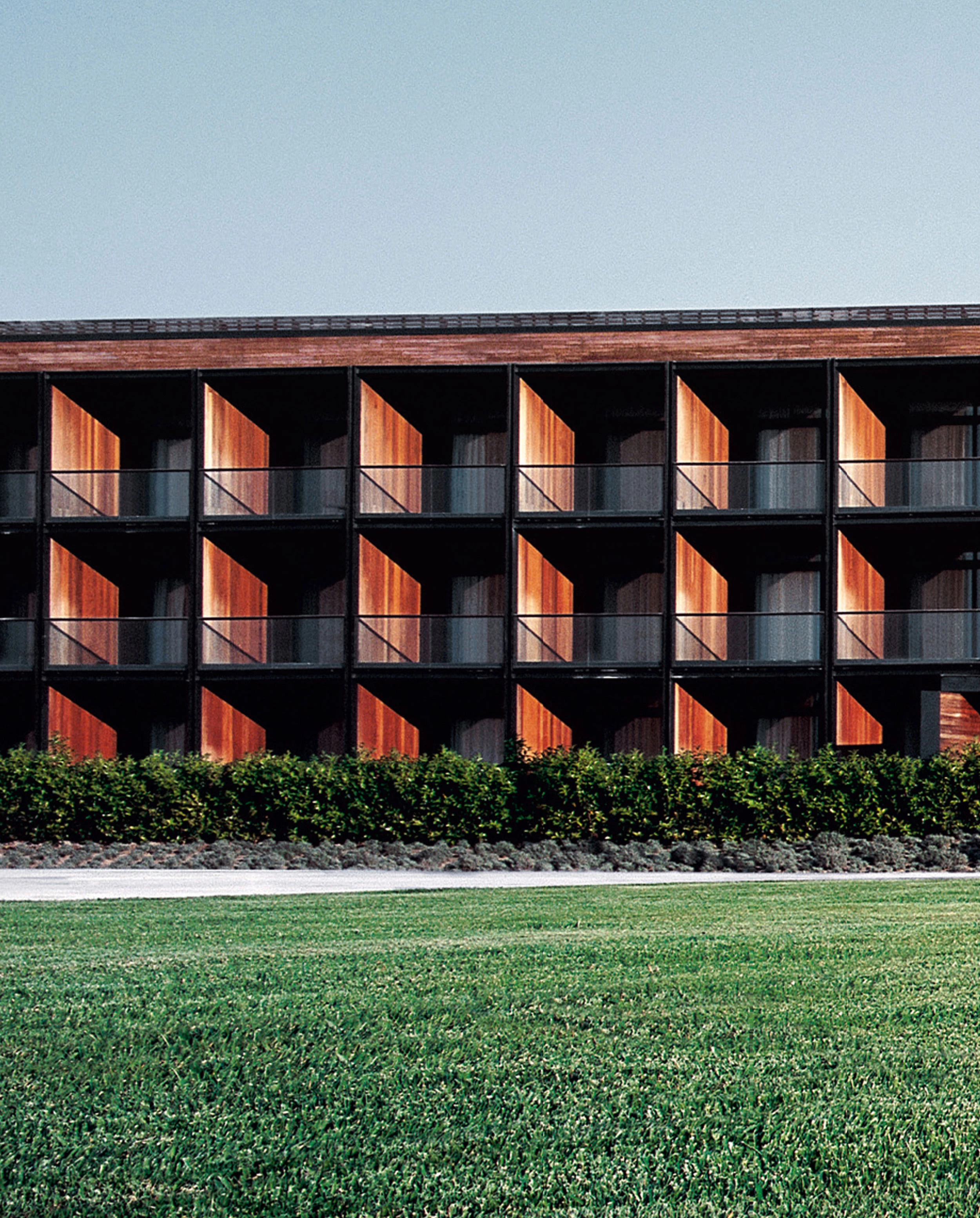 Carlos FerraterLocated in the agricultural terrains thatspread along the road joining Torroella with Palafrugell, in the Ampurdán region of Gerona, the new hotel completes the facilities of the Empordà Golf Club. The flatness of the land is only interrupted by the presence of the Montgrí mountains and the Ter’s riverbed, which are the most salient features of the homogeneous surrounding landscape.