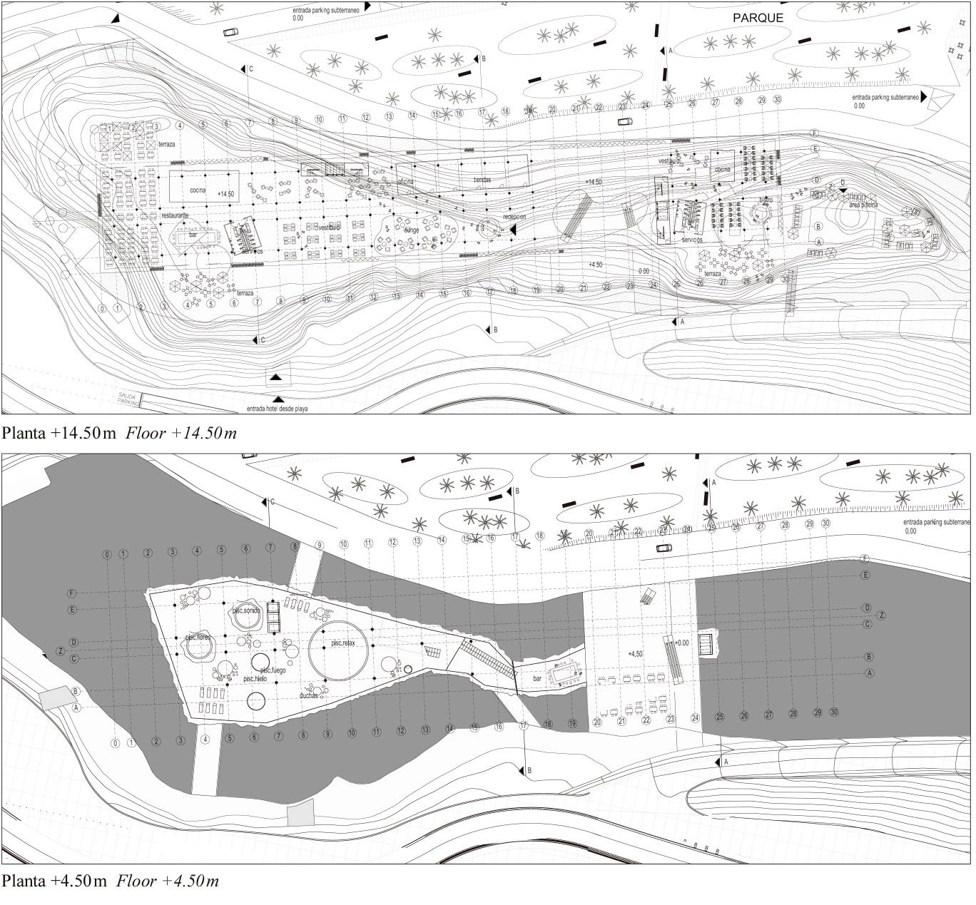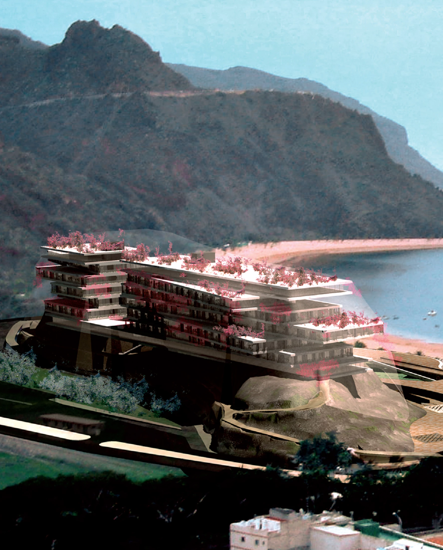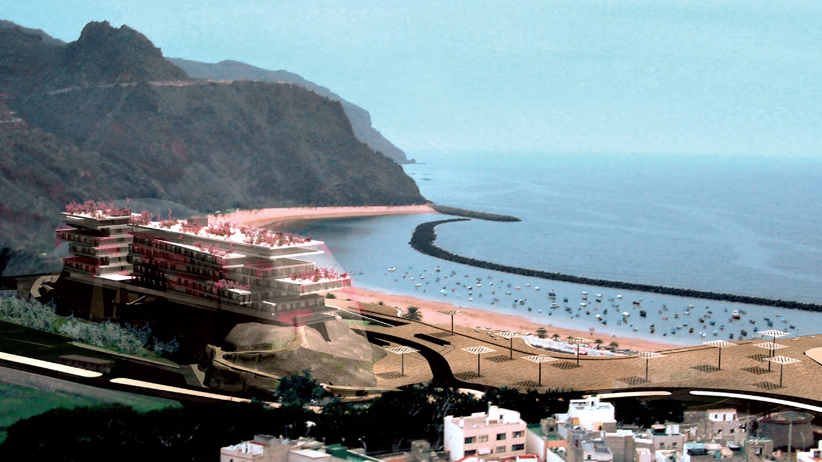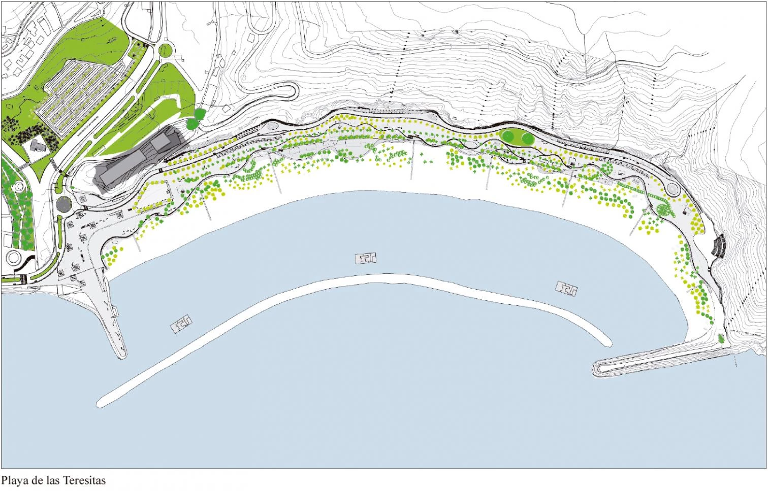 The proposal aims to redesign the area of the Playa de las Teresitas in Santa Cruz de Tenerife, a competition won by Dominique Perrault in the year 2000. The urban plan for the Ciudadela is developed within this specific context, and comprises a luxury hotel, a parking, shops and restaurants.