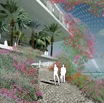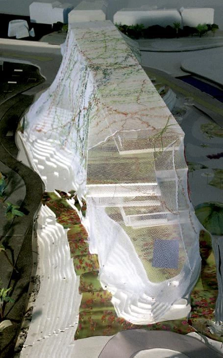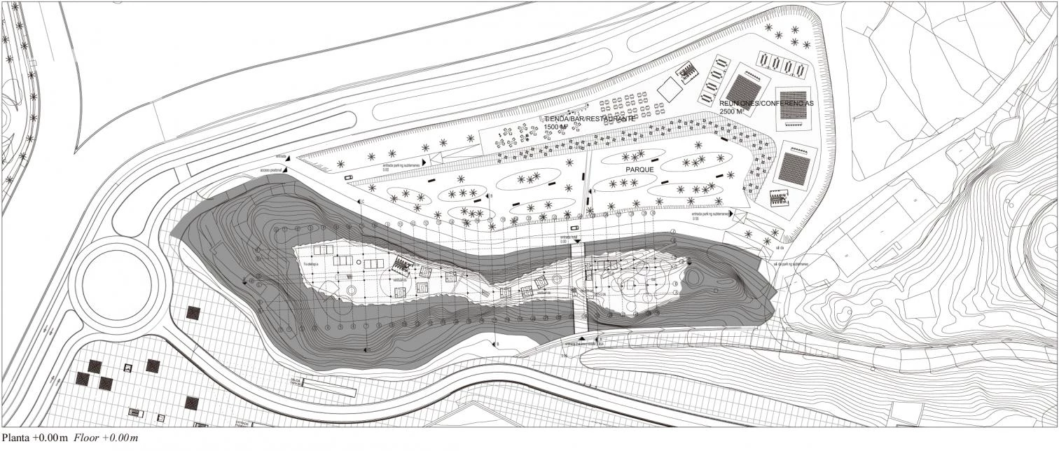 The project tries to define a presence rather than an architectural action through the establishment of a new geography: the Ciudadela appears like a fabric that gives the current topography a new depth, and a new landscape. The plinth starts from a hillock of black earth, with vegetation, with winding paths that reach the top, the future botanical gardens and the main platform of the project, ‘the landscape platform’. The facade onto the city, on the contrary, takes on a more urban configuration, acting as an articulation between the different neighborhoods of the city. This landscape appears on surface in the form of a vibrating metal mesh veil, as if it were a live organism, its rhythm paced with the interior and exterior lights. The mesh conceals a sensitive universe of visual or practical itineraries; an urban and active complex that complements the old and future city.