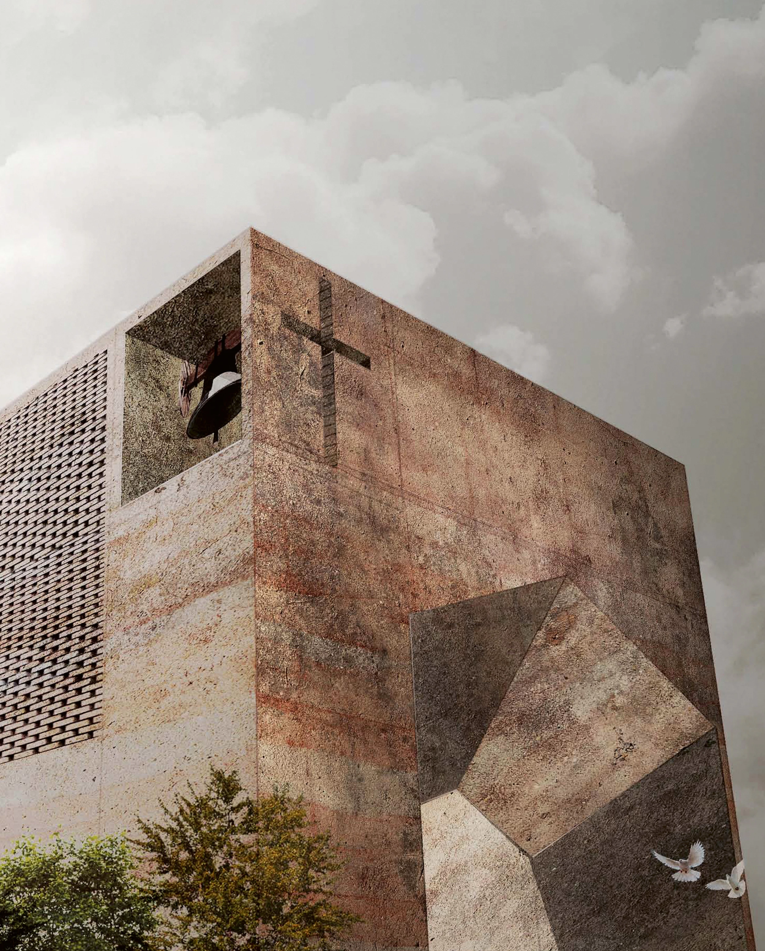 The project to build a church is set forth as an opportunity to favor social cohesion in the area. The massive volume is divided into thirteen sections, each different in program, and the circulation within the enclosure is inspired by that of old churches...[+]