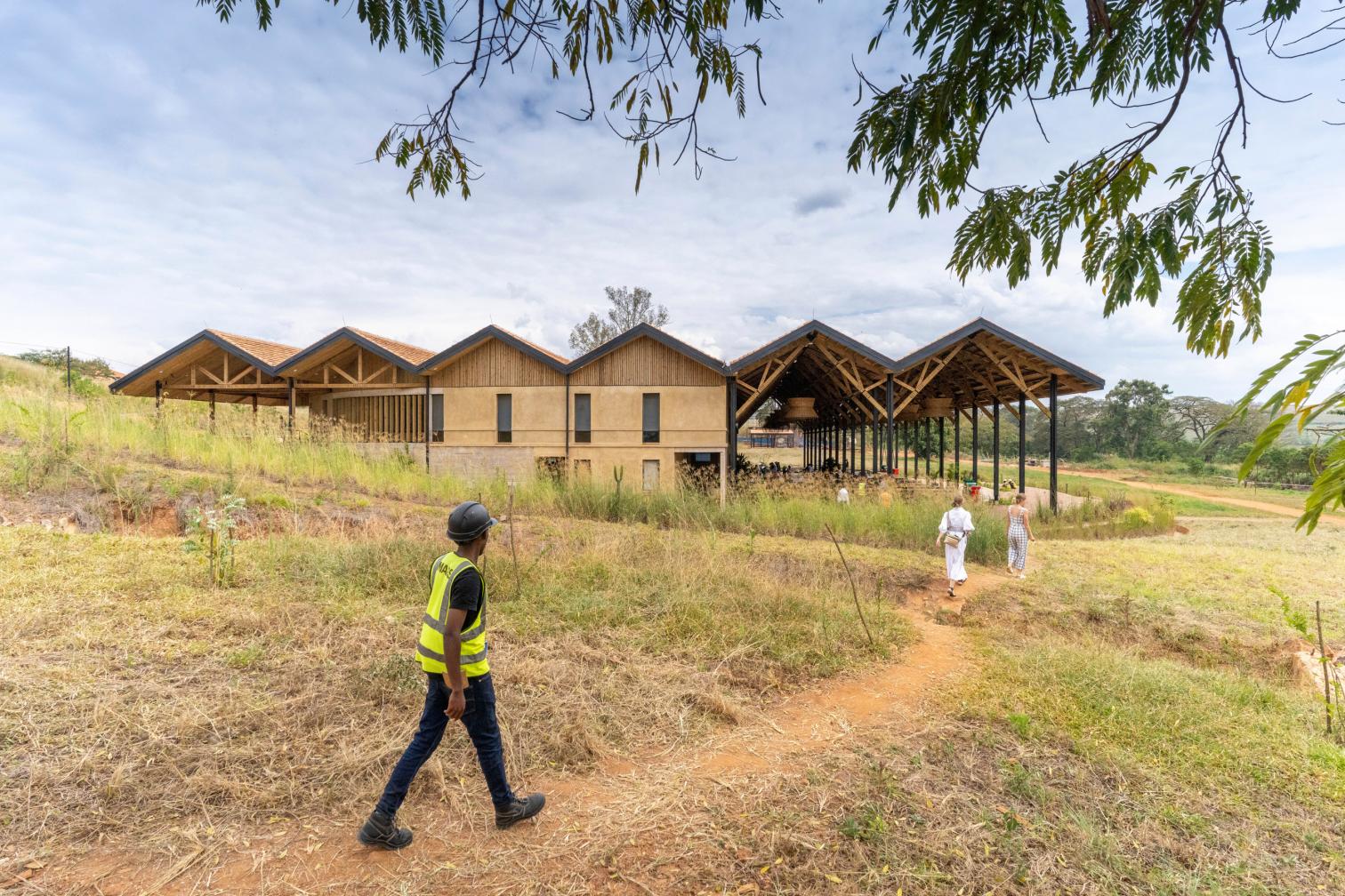 For the construction of the complex, which features student housing besides academic buildings, the projoect MASS Design Group uses predominantly local materials like rammed earth for the walls, which minimizes carbon dioxide emissions and is earthquake-resistant. The wooden roofs are topped with terracotta tiles fired with waste coffee-bean husks, while stone forms the foundations, reducing the amount of concrete needed.