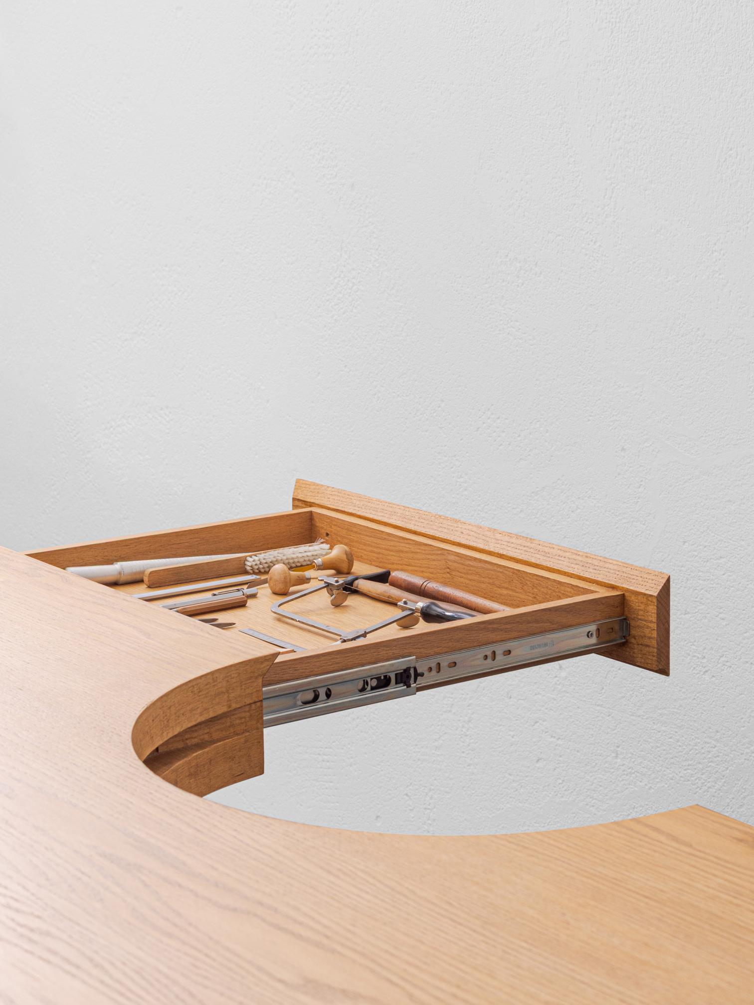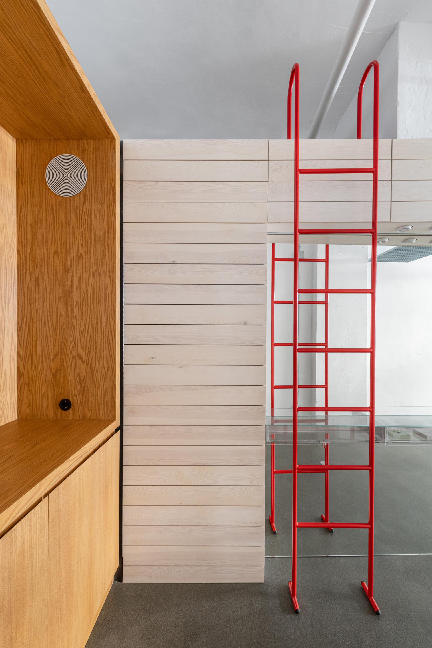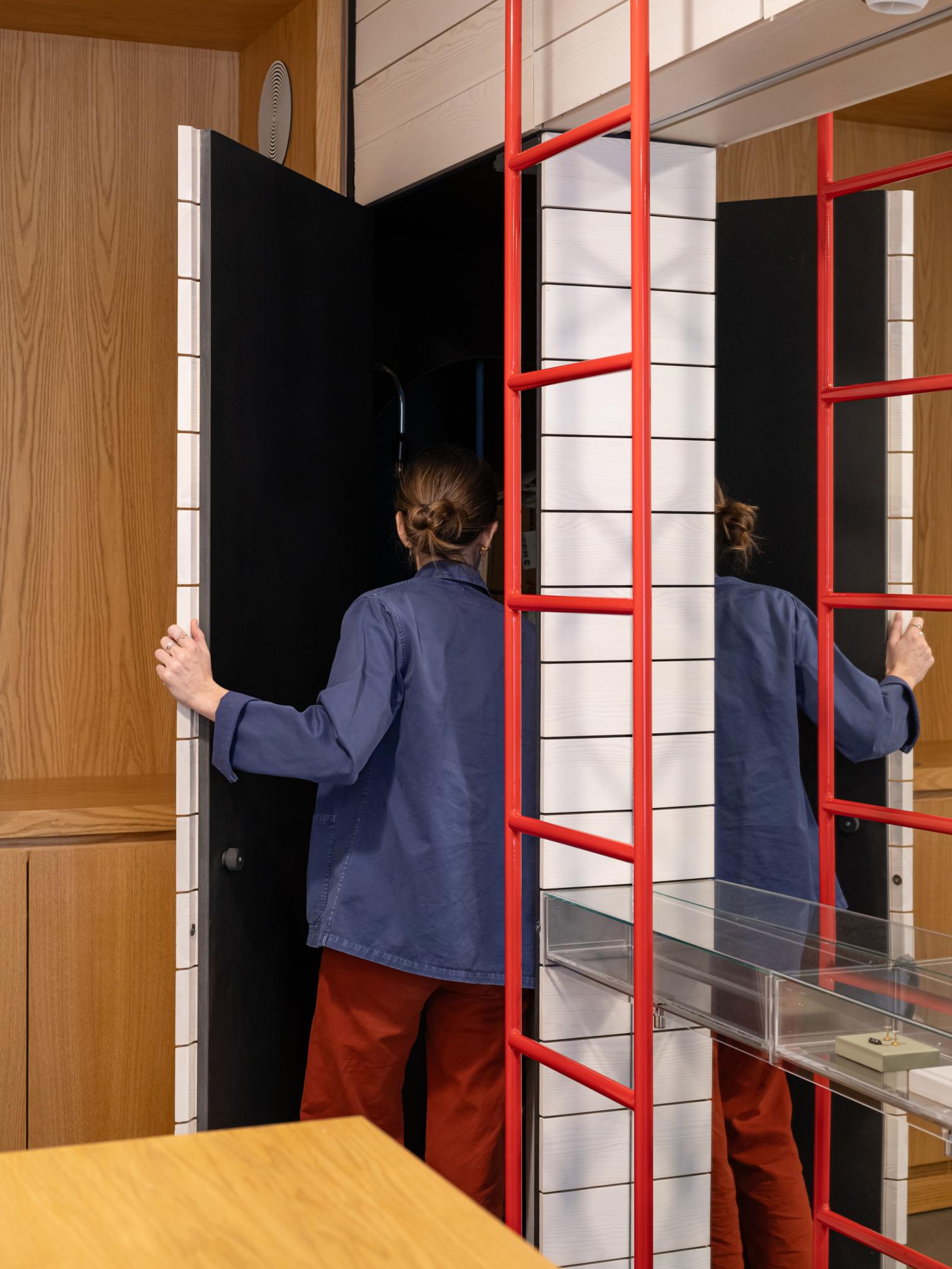 Other objects complete the identity and flexibility of the space: the staircase to the loft, designed with craftsman Fran FFFF, and the liftable tramex trays that evoke old dry-cleaning bars.
