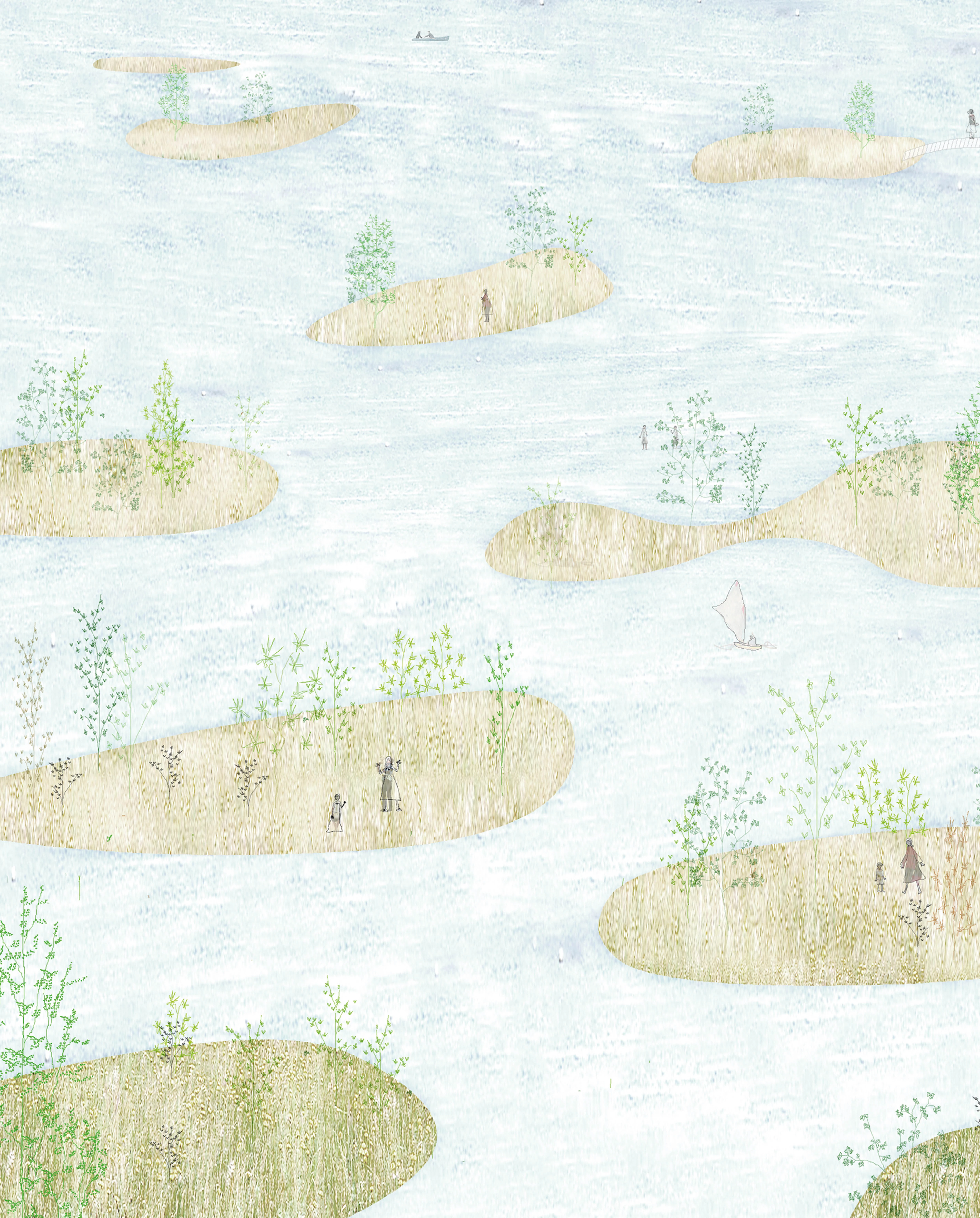 The topographic design aims to reactivate an area that is highly affected by the unstable weather and the uneven exploitation of its resources, offering a landscape of variable morphology that is organized by the different water levels...
