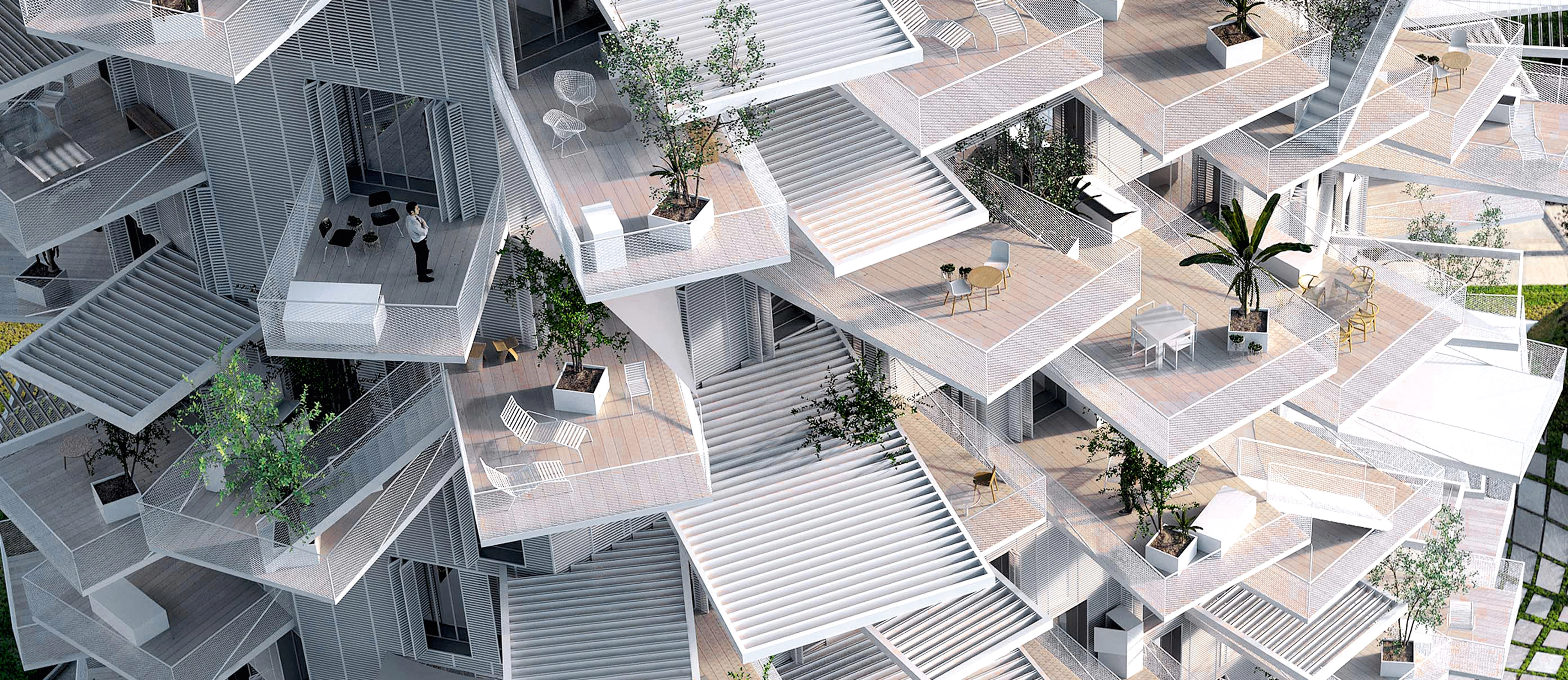 Of 17 floors and 10,000 square meters, the design of this iconic tower located by Lez River is by the Mediterranean tradition of outdoor living, and is the result of the collaboration of the Japanese office with two young French studios.
