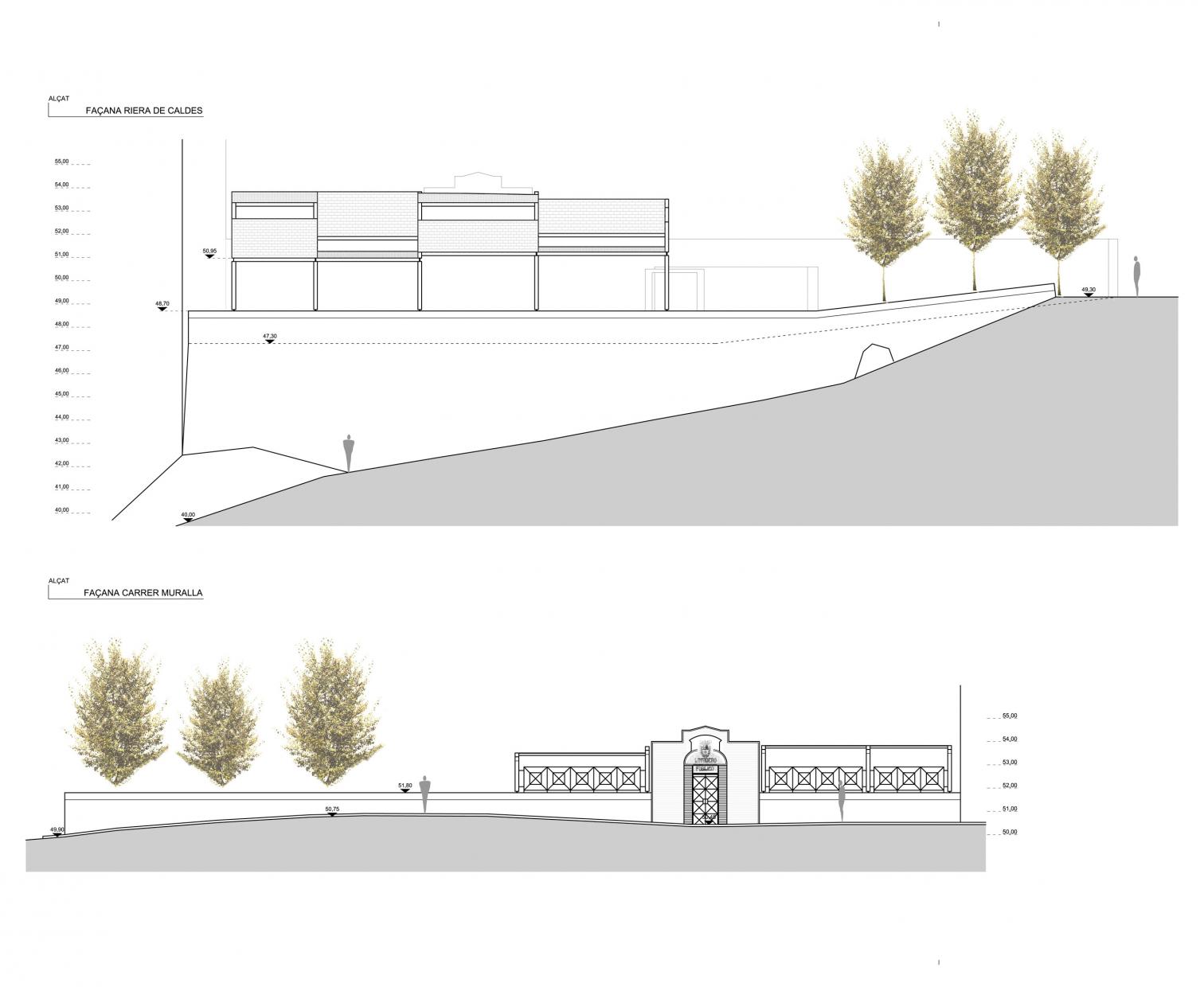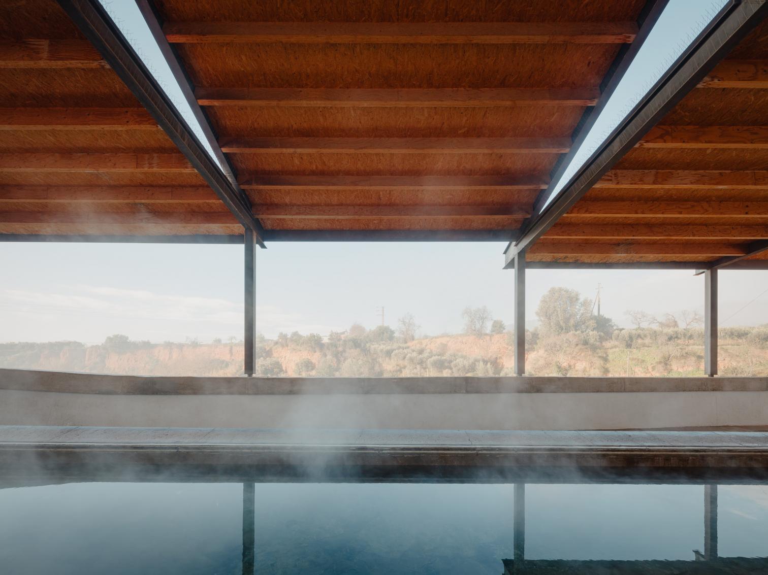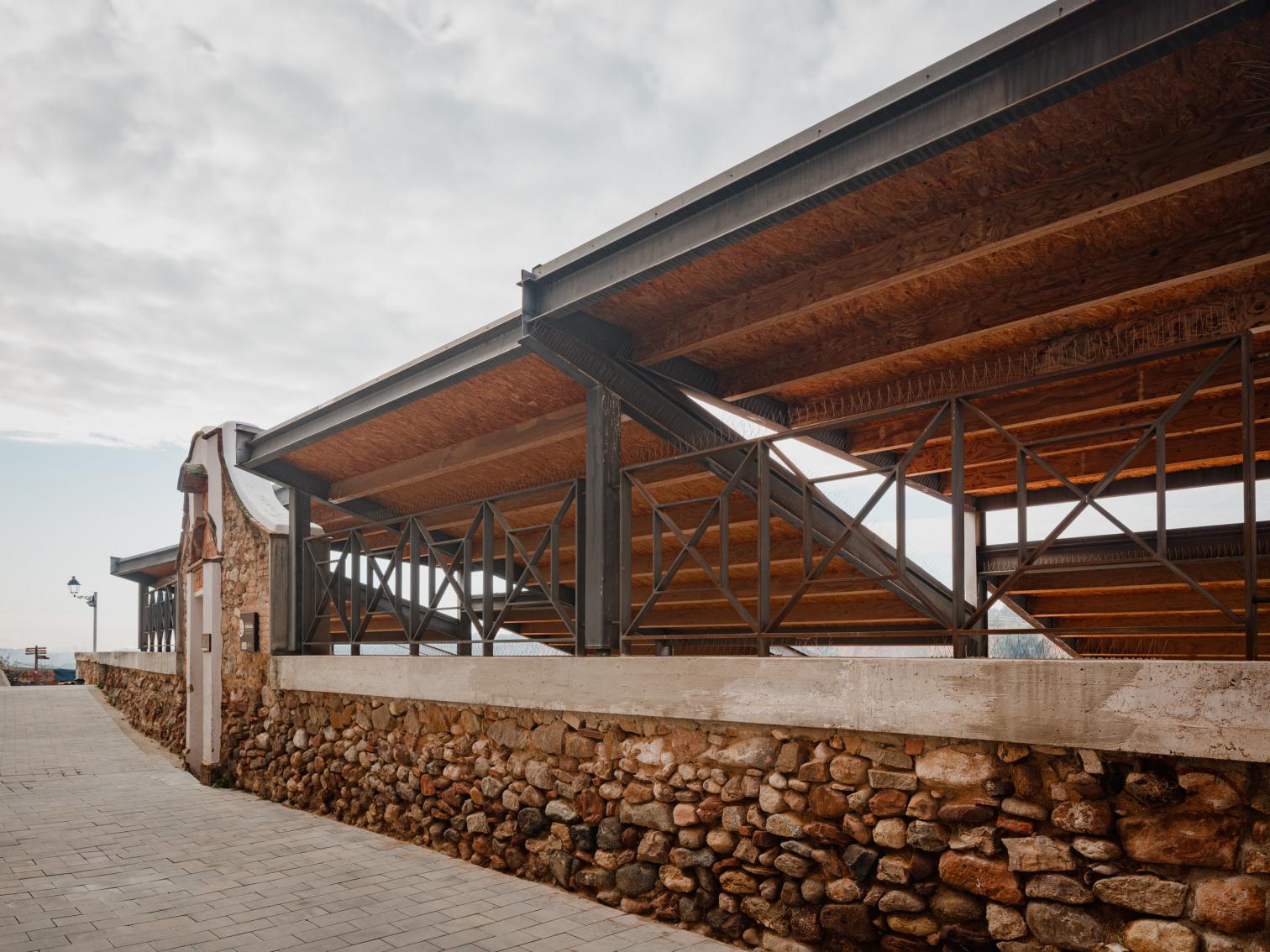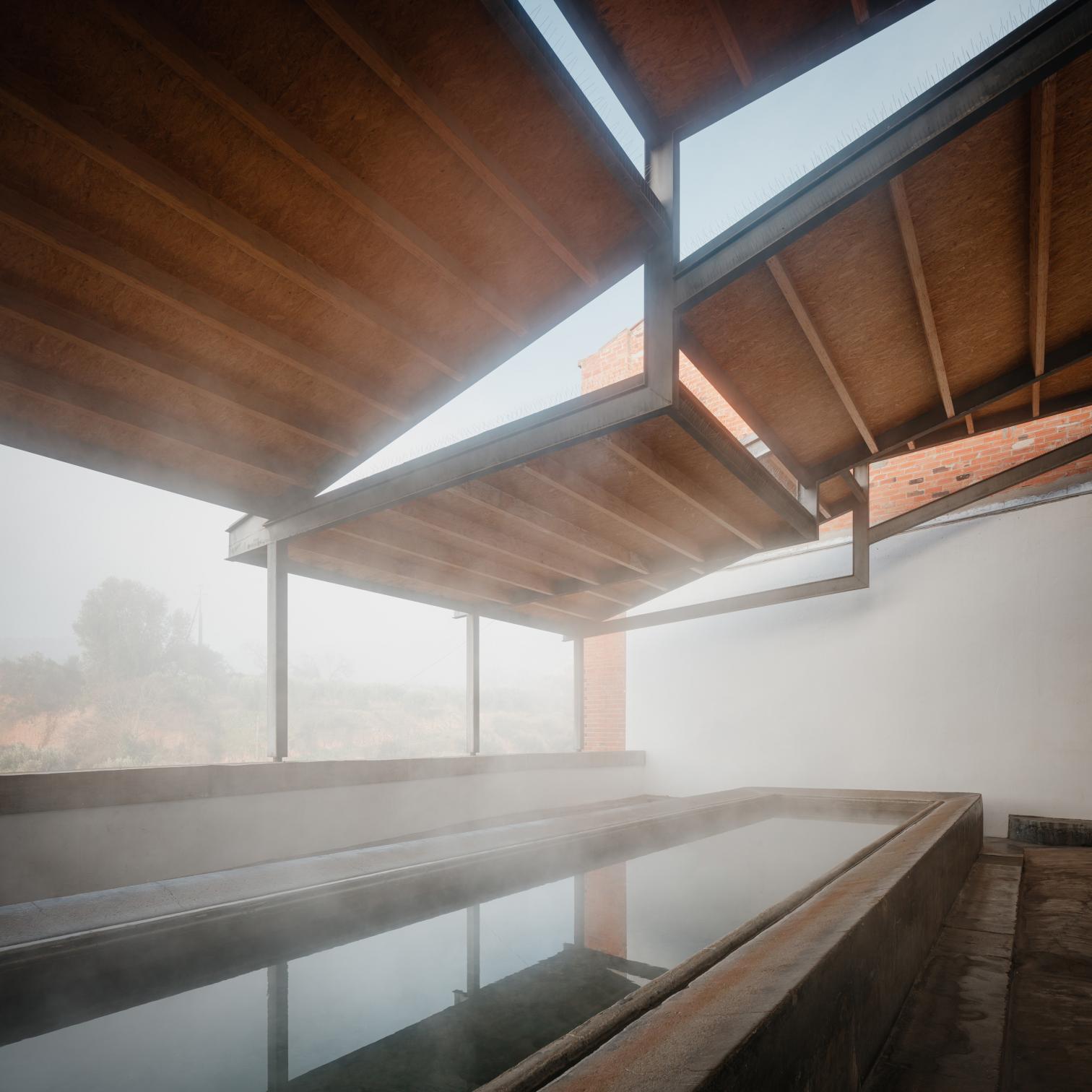 Just like its name, hot springs mark the history of Caldes de Montbui. Receiving water from an almost eighty-degree underground stream, the Barcelona town preserves remnants of Roman baths, a 16th-century fountain, and two still-operating lavoirs, of six that existed. One, located along a riverbank on the edge of the old town, is revitalized in a way that respects original elements, from the gate or benches to the washbasin and the scrubbing surfaces, which are protected by a new roof of tile-covered wood that is stepped in order to adapt to the site’s inclination, as well as to create gaps for light to shine through and to prevent steam from accumulating, making the laundering task more agreeable.
