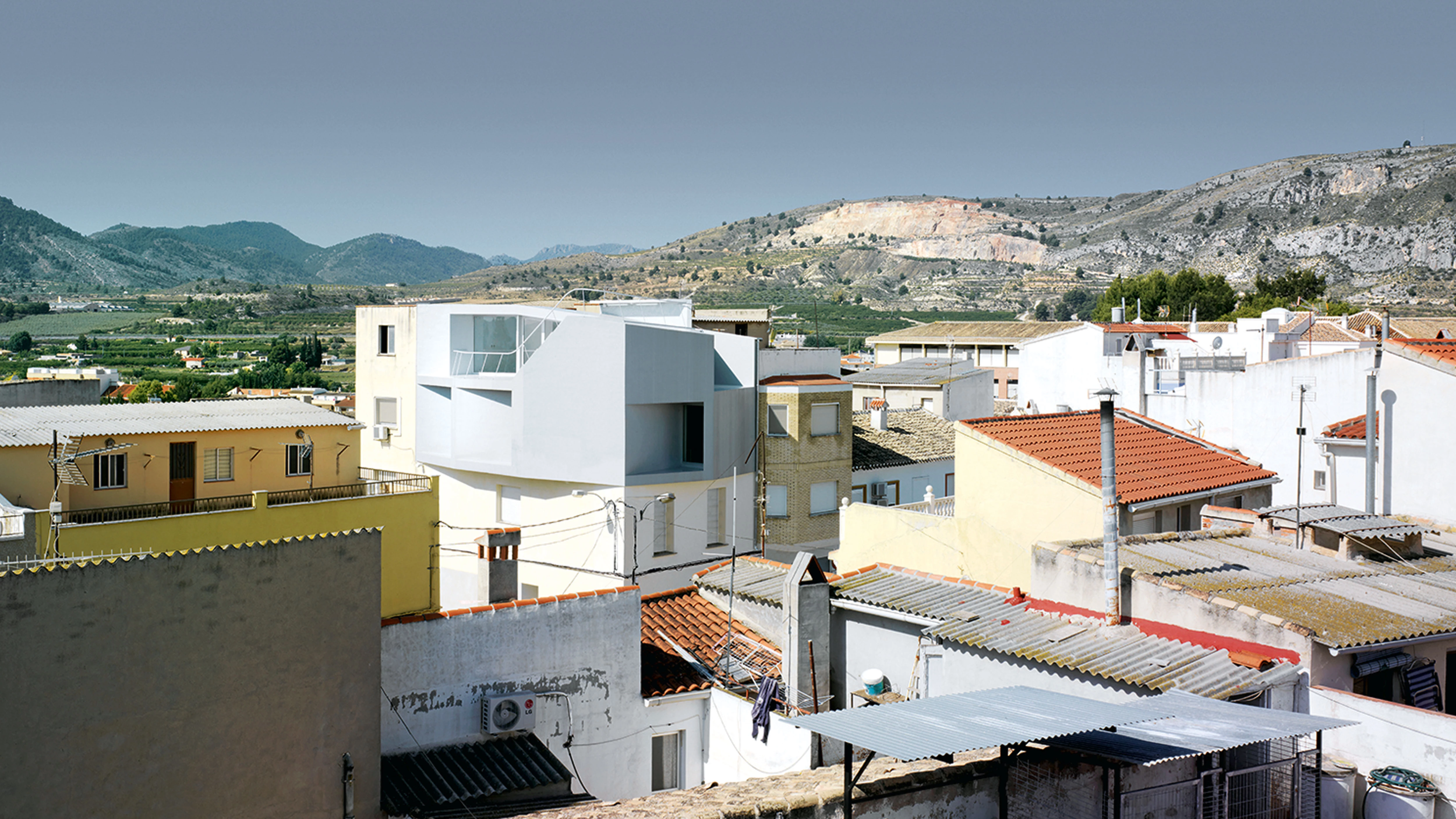 Set over hills of the Baetic System in the northwestern part of Murcia province, the municipality of Cehegín is sculpted with a pixeled topography of reddish tones, and the magnitude of its architectural monuments rises amid the wave of pitched roofs clad with ceramic tiles. Besides churches and the ruins of a Roman past, the landscape is now also marked by a volume that presents a faceted geometry and oblique engravings on its surfaces. This is the Lude House, named so for its owner, who has built his abode over his ancestral home.