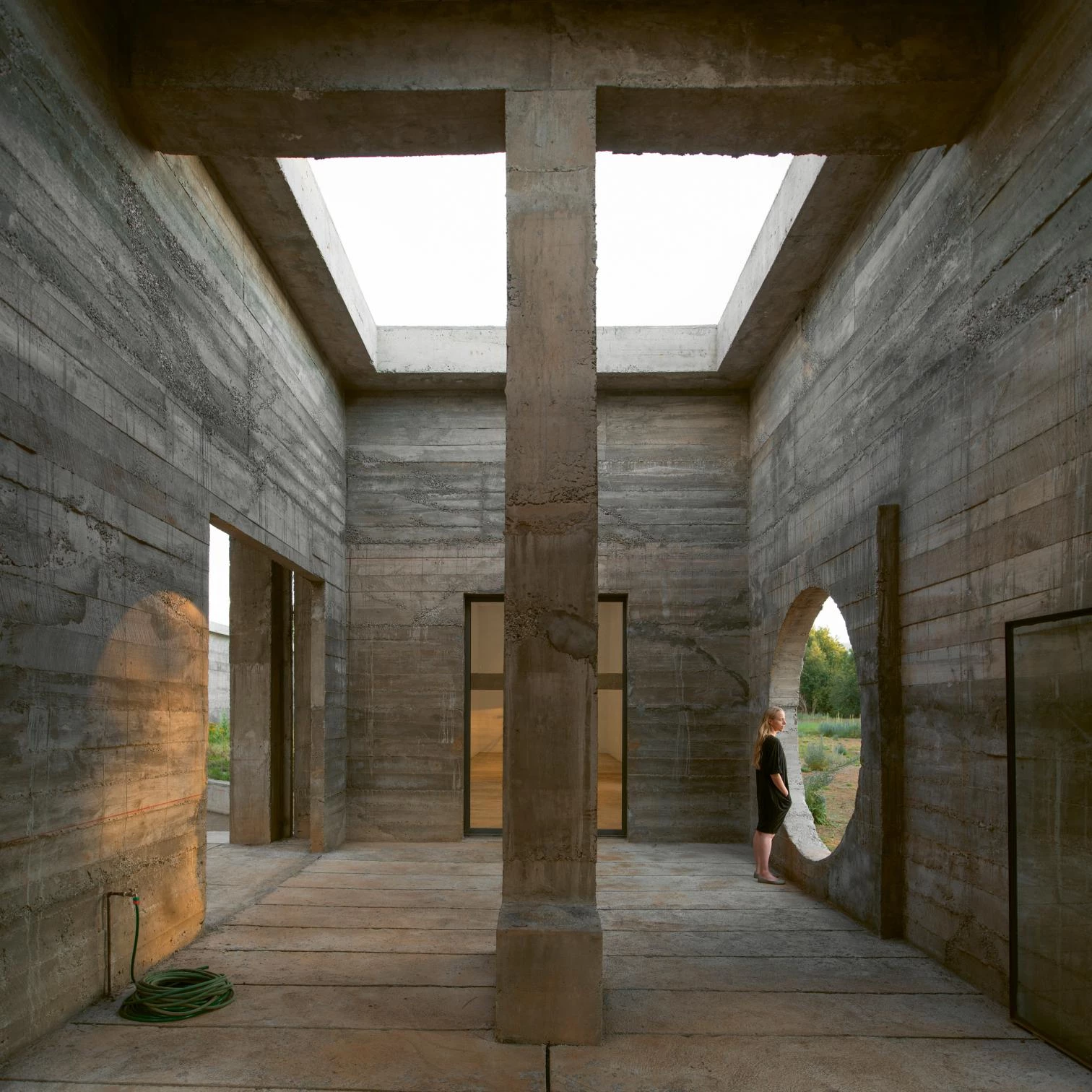 Each room shows distinct spatial qualities marked by singular openings in unique shapes and facing different directions, which establish a faint functional division between living and working and blur the frontier with the exterior.