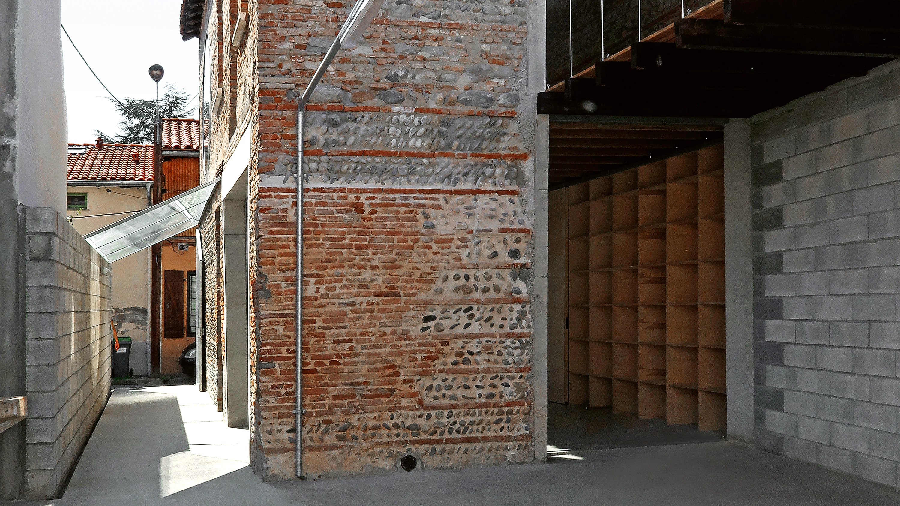 The project concentrated on refurbishing and transforming the ensemble. The new building is a rectangular volume with a pitched roof, while the main house has been left intact. The first measure taken involved the existing timber floor slab, cutting the wooden beams at midpoint, the heads of which are held up by steel cables which in turn are anchored to a new steel beam embedded into the loadbearing walls. Following the same structural scheme, an elevated platform was suspended from a metal profile, connecting the two volumes while forming a covered gallery in the garden. The openings on the facade were enlarged by means of new concrete lintels, and the old plaster was removed, leaving the original brickwork for the eyes to see. On the other hand, the kitchen was executed with galvanized steel and given a cladding of sliding panels fabricated with birch plywood. The pavement, for its part, is made of trowelled concrete...[+]