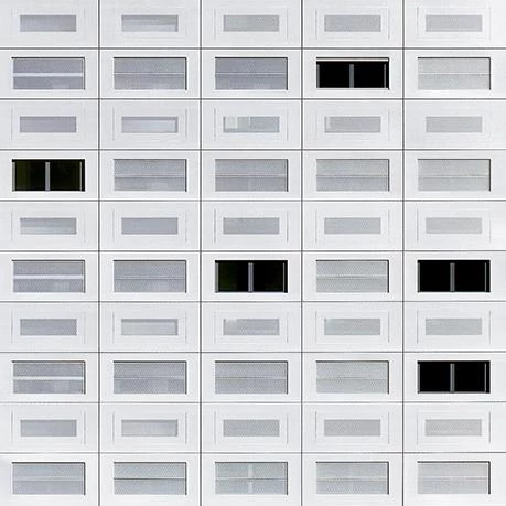 four large poplars create a dialogue with the metal facade. The scheme contains 225 housing units, 5,200 m² of offices, and a new campus of 3,000 m² where the Vatel international school of hotel management and tourism has decided to locate its new facility with classrooms, a restaurant and a brasserie, as well as a residence for students with 280 apartments. In addition to aligning the floors from one construction to another and the shared regularity of the openings that make up the facades, each common space is at the same level, which provides an open and broad view of the historic city’s skyline. The design of the tower’s facade is based on the repetition of two brushed aluminum modules with rectangular openings. The skin reflects its environment during the day, while at night the perforated sheet shutters dissolve and let the interiors of the dwellings be seen.