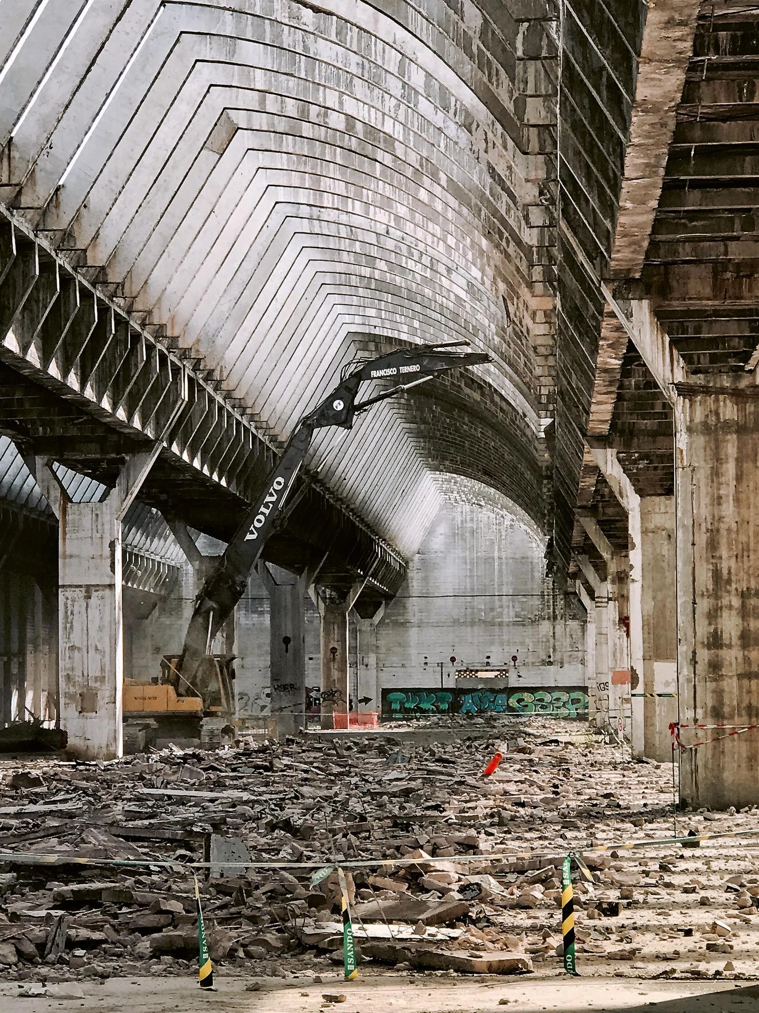 The project preserves the precast concrete structure of the building designed by Vázquez Molezún. Y-shaped columns support the double beams on which the roof rests, with north-facing skylights.